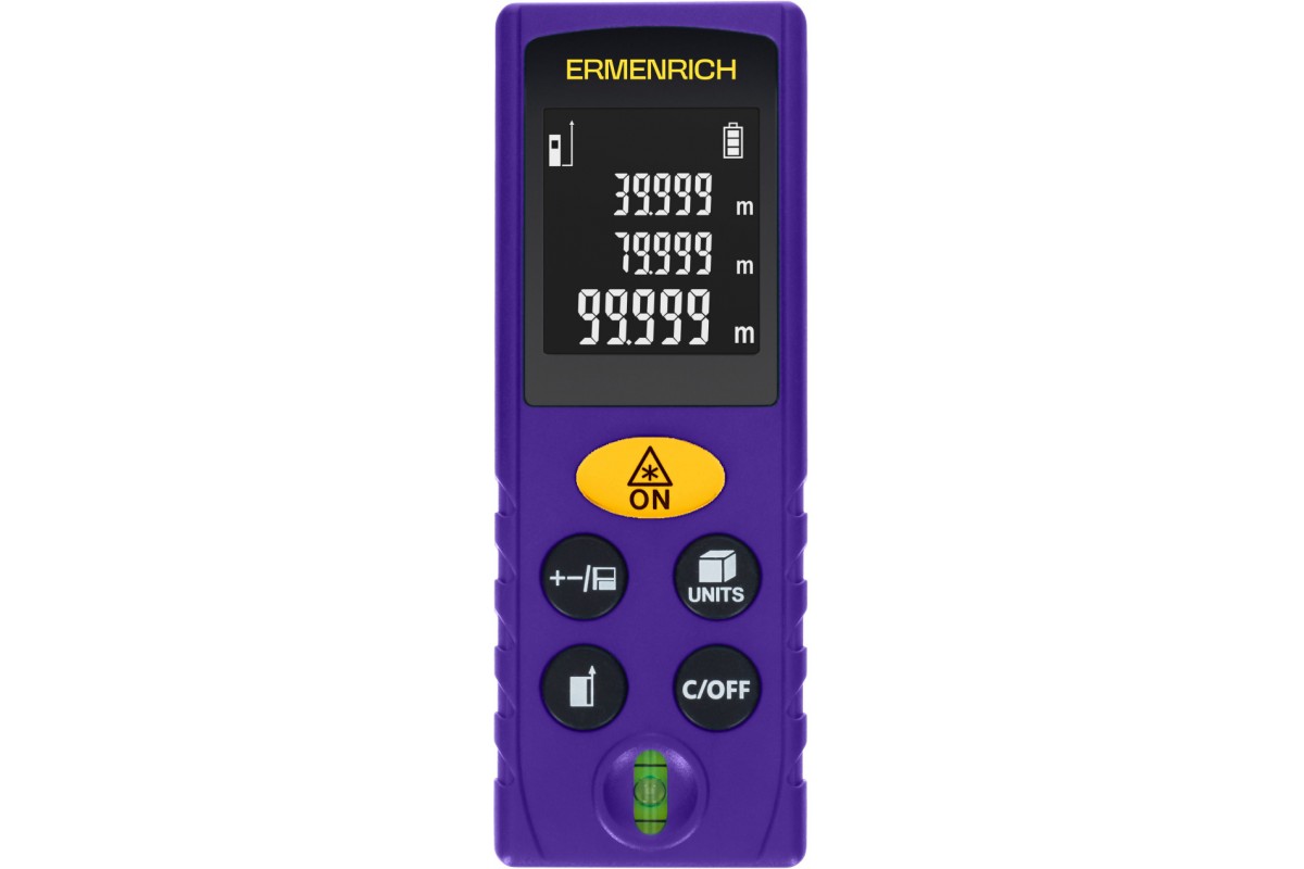 Лазерная рулетка Ermenrich Reel PLUS GK40 позволяет делать точные замеры расстояний, площади и объема в ручном или автоматическом режиме. Функция «Пифагор» позволяет определять расстояние до нужной точки даже в сложных условиях, используя данные промежуточных измерений. Диапазон работы – от 0,05 до 40 метров, что достаточно для решения большинства строительных и бытовых задач.