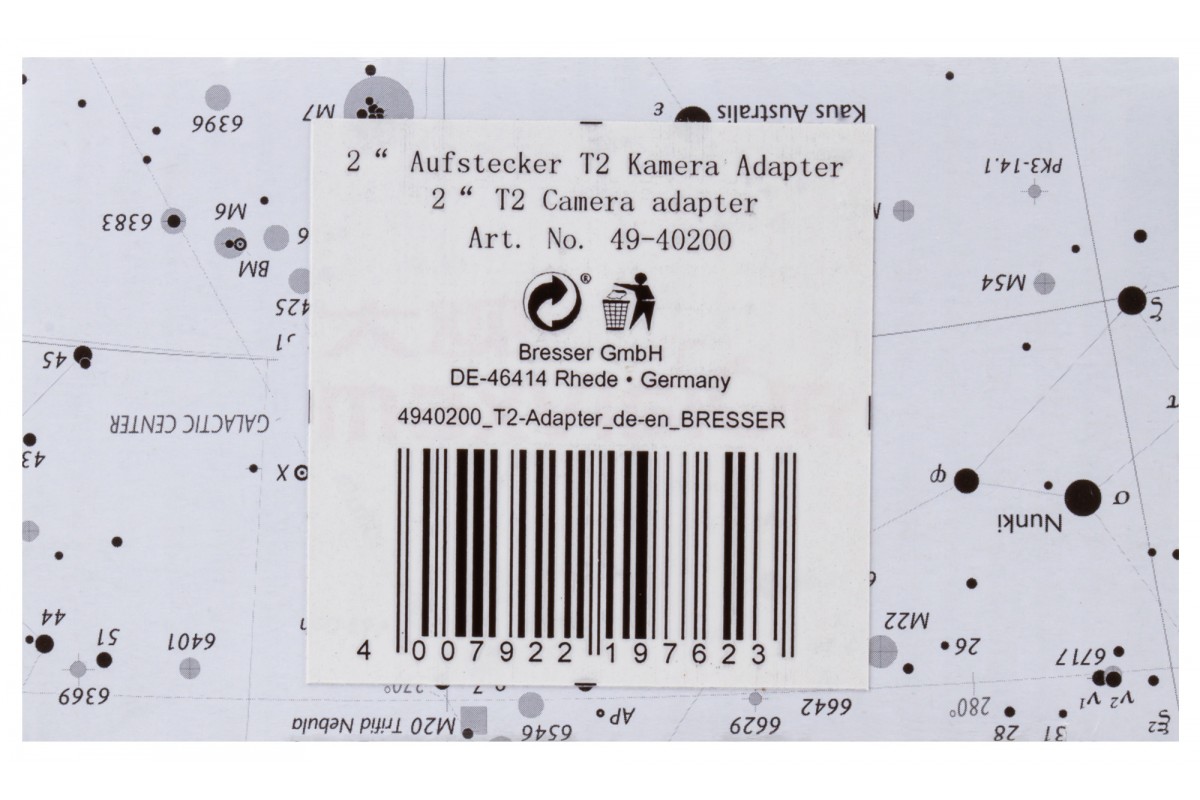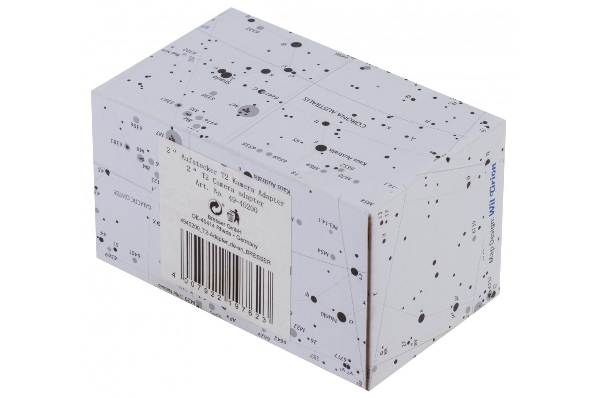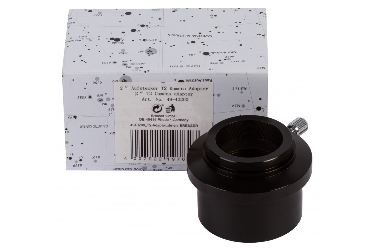 Адаптер для телескопа Bresser 1,25/2" с T2-резьбой предназначен для телескопов с фокусером 2 дюйма. Он позволяет устанавливать на них оптические аксессуары с посадочным диаметром 1,25 дюйма. Кроме того, адаптер имеет Т2-резьбу, т. е. его можно совместить с зеркальной камерой, чтобы заниматься астрофотографией. Обратите внимание: Т2-кольцо в комплект поставки не входит.