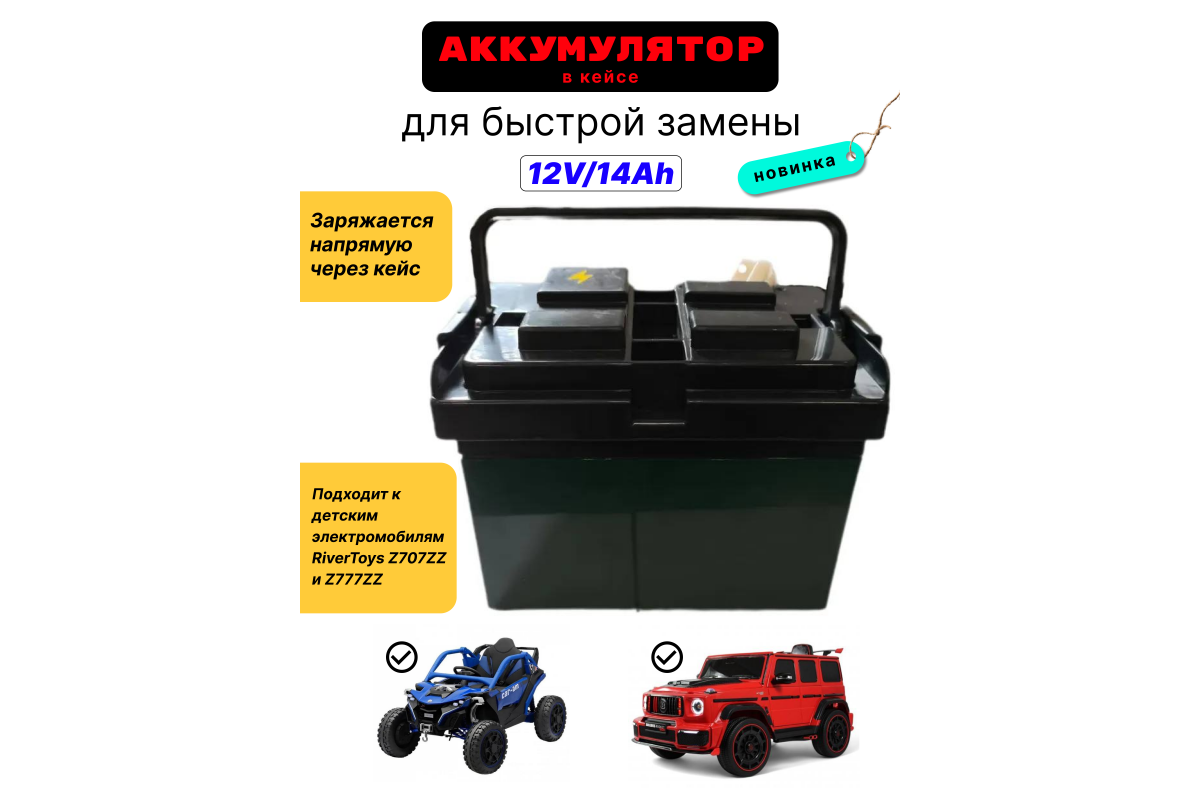 Данный комплект - АКБ в кейсе, предназначен для быстрой замены батареи в Детских электромобилях Z707ZZ и Z777ZZ.
