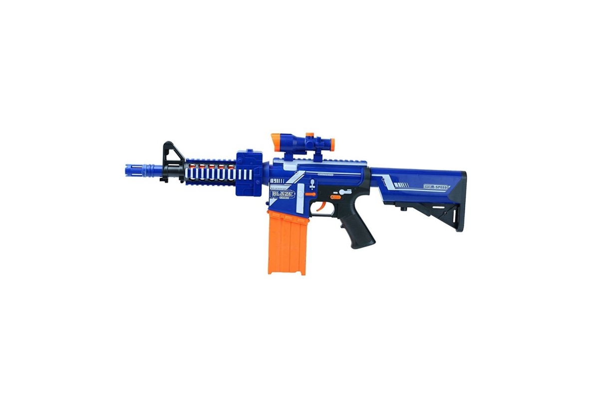 Из такого игрушечного автомата можно производить выстрелы с использованием мягких безопасных пуль. Уникальный дизайн изделия обязательно понравится маленькому ребенку. Представленная игрушка изготовлена из надежной и качественной пластмассы.
