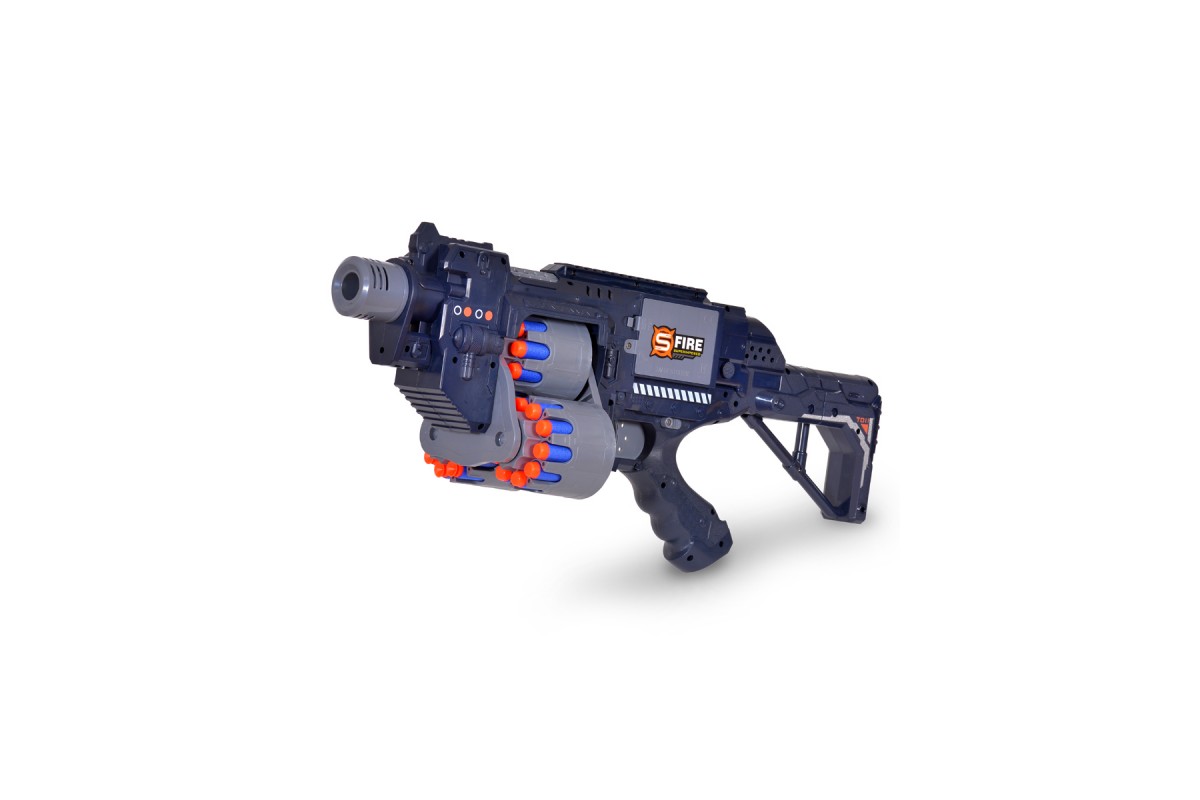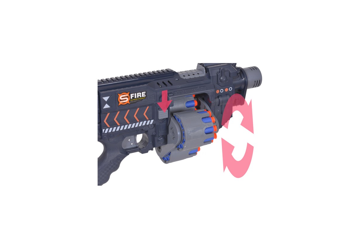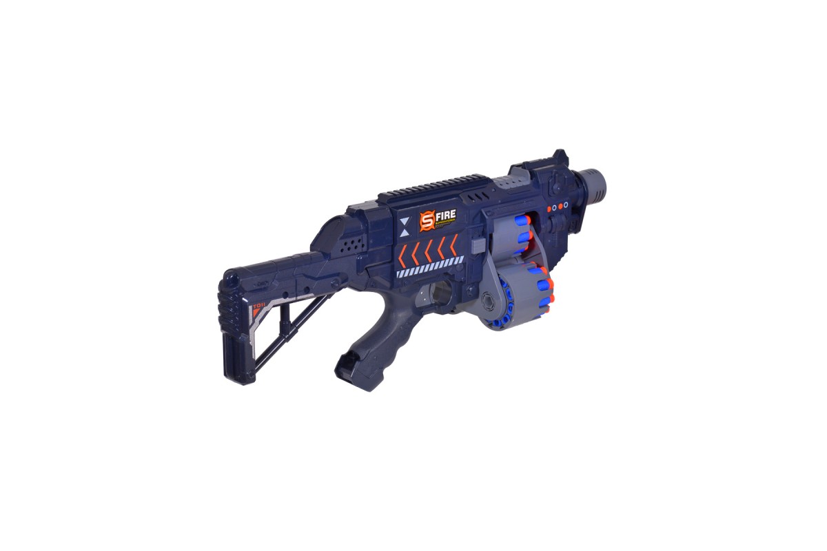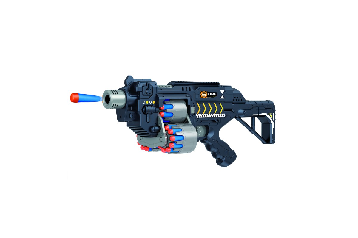 Автомат черный на батарейках с мягкими пулями - G2B - это 30-зарядный бластер на батарейках с тремя барабанами.