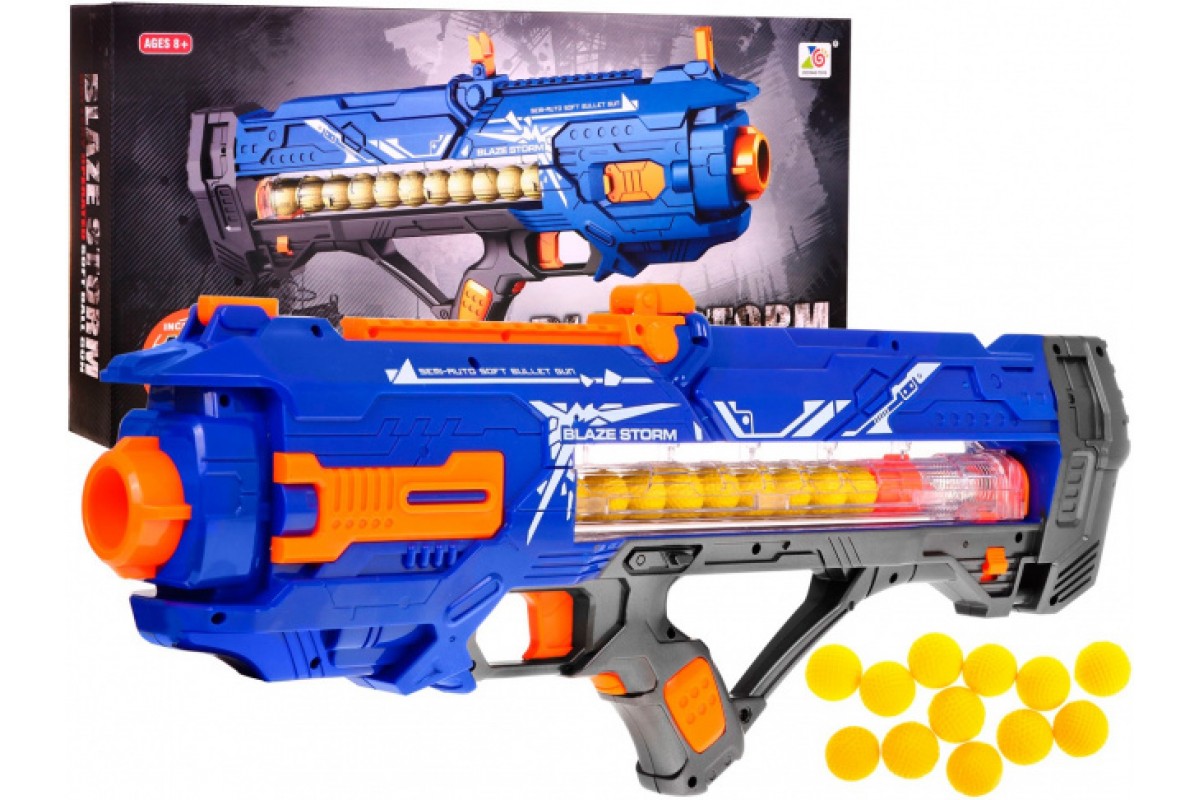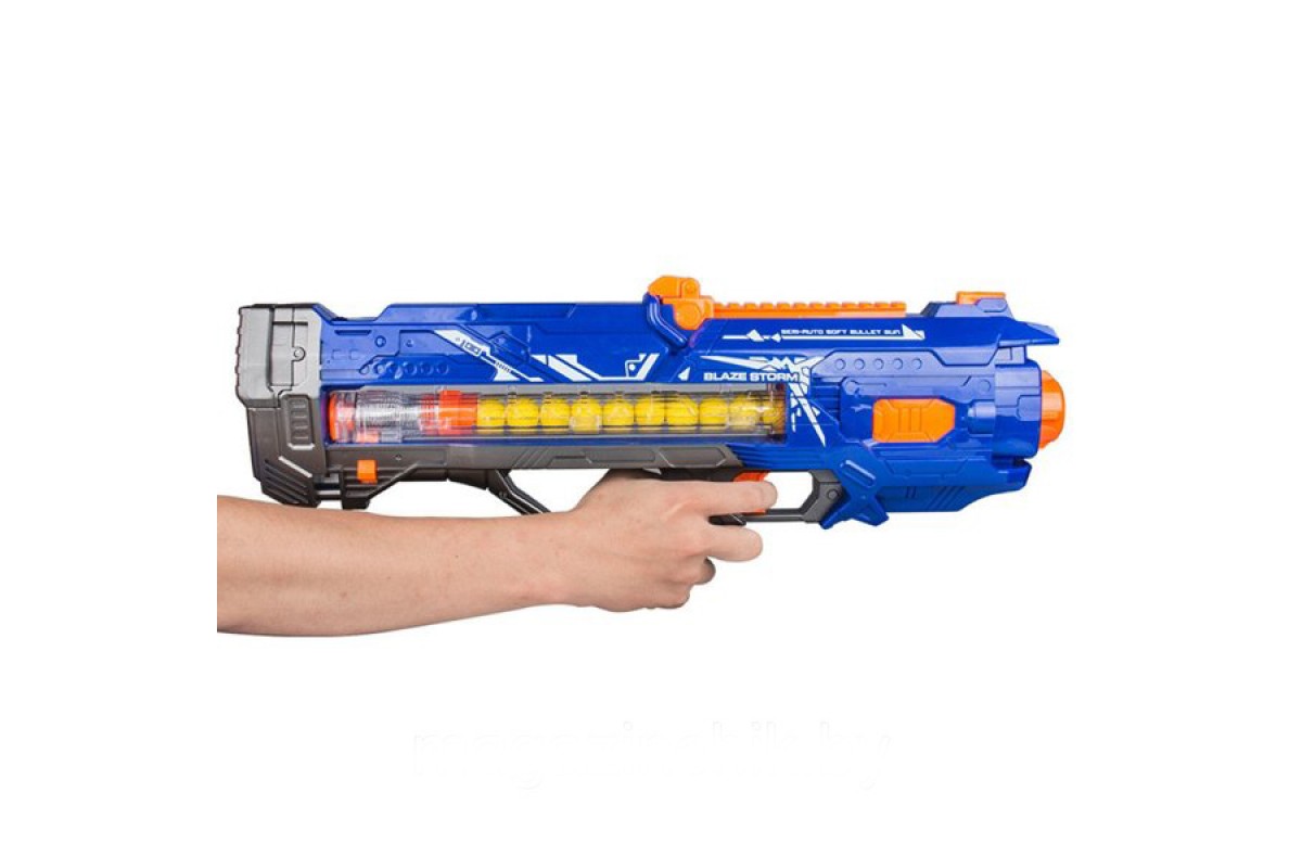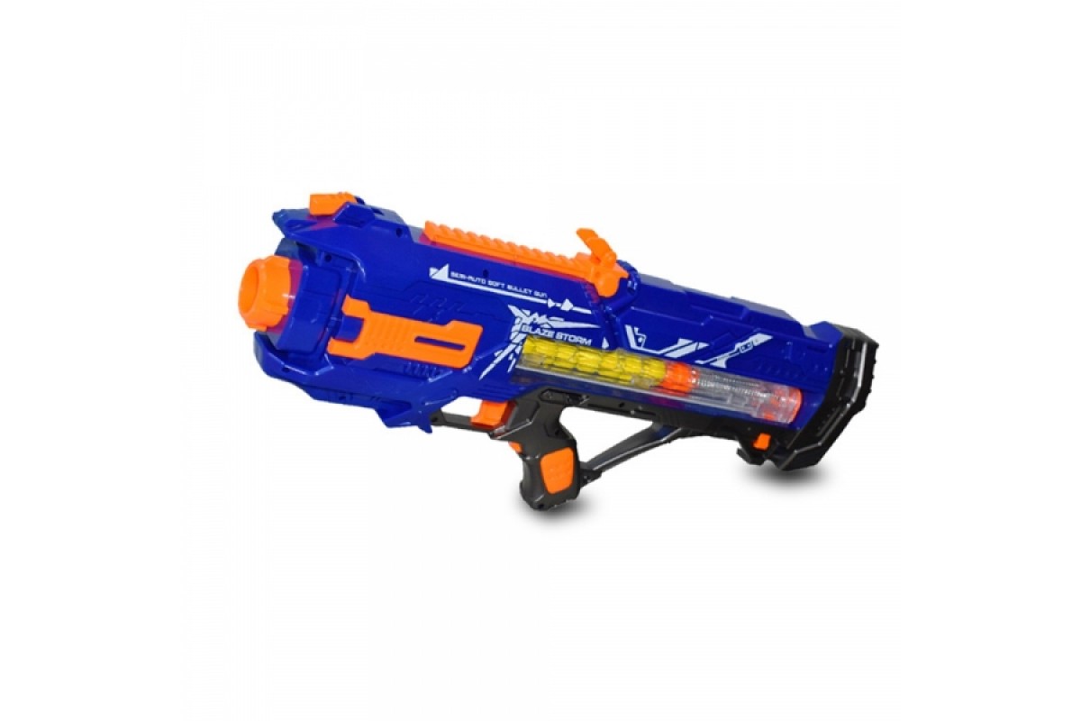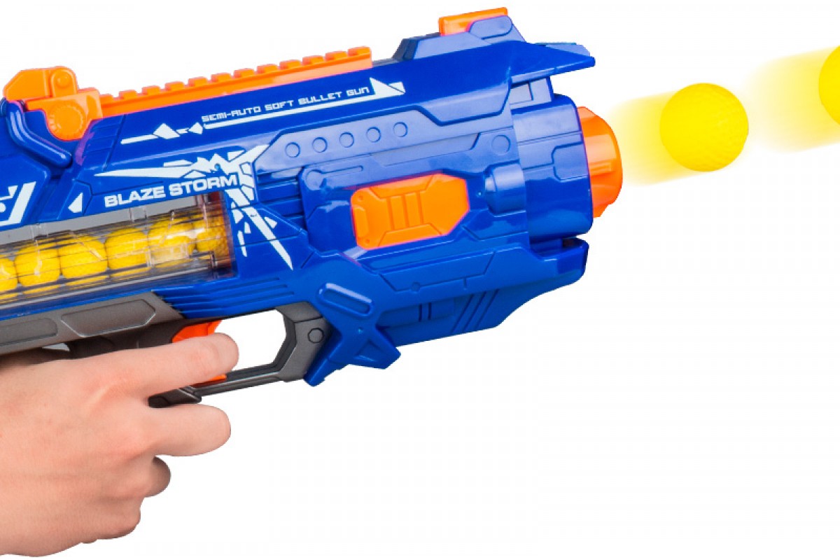 Электромеханический Бластер Blaze Storm с мягкими пулями понравится мальчику своим футуристическим дизайном. В комплекте с бластером имеются 12 пуль из мягкого материала. Они круглой формы и безопасны для окружающих. Благодаря эргономичной конструкции бластер удобно будет держать во время стрельбы. Игрушка сделана из пластика.