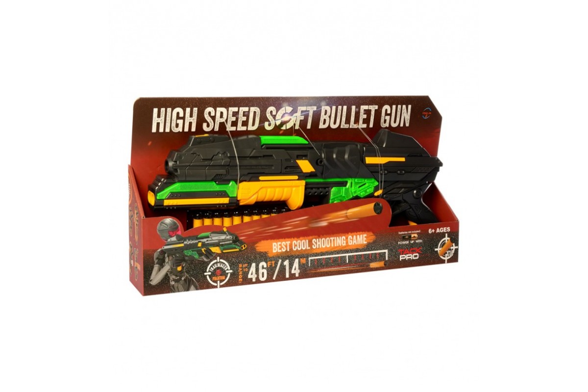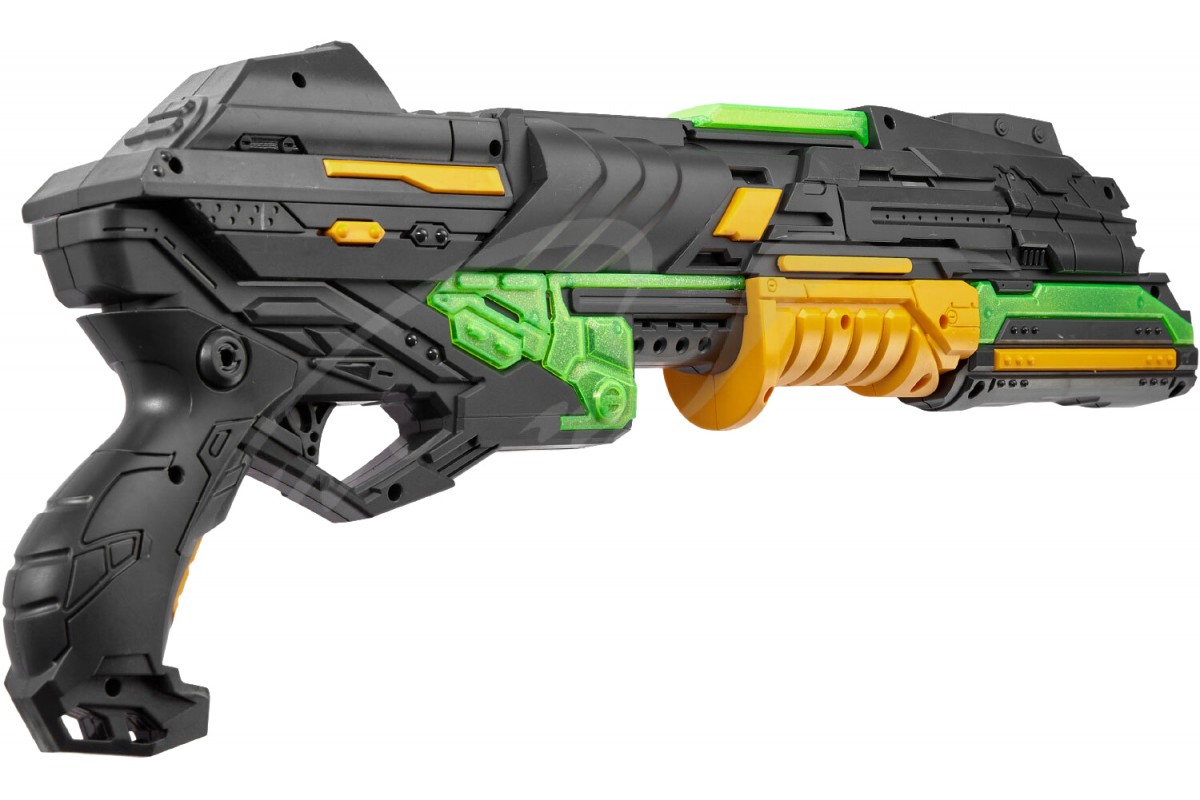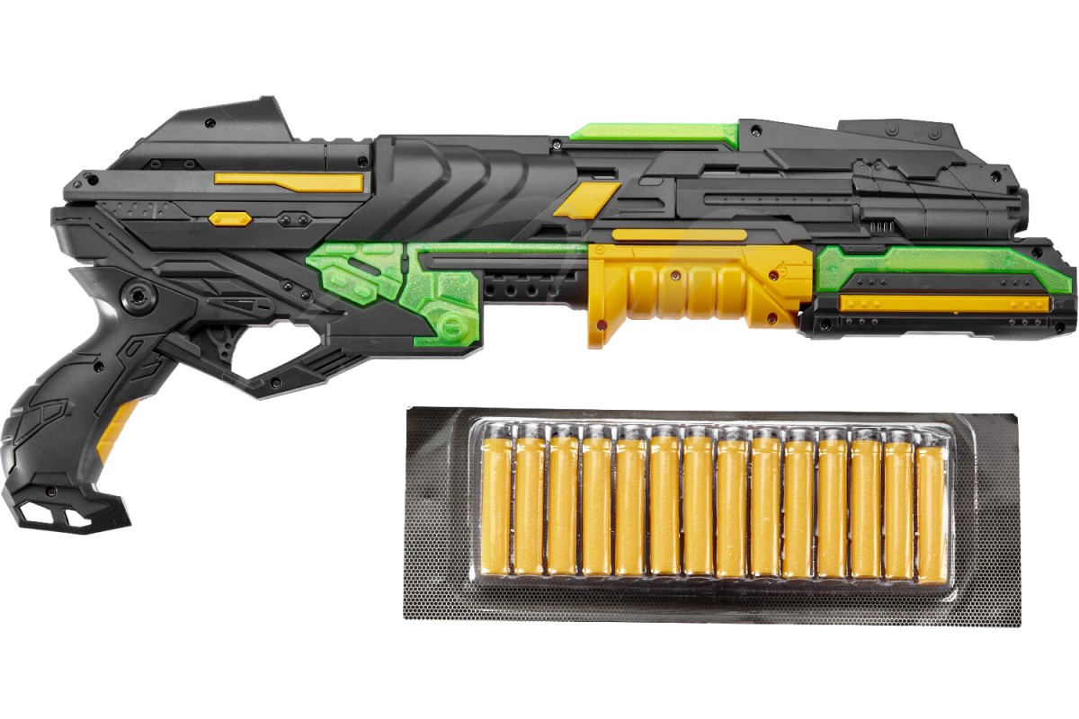 Автоматический бластер Дробовик с мягкими пулями (50 см, 14 патронов на батарейках) - FJ1054 - это качественное игрушечное оружие, которое развивает физическую выносливость, меткость и ловкость ребенка. Детали оружия изготовлены из прочного пластика, а патроны (стрелы) – из вспененного полимера, который исключает появление синяков и царапин при случайном попадании в игрока. Закругленные наконечники дополнительно амортизируют удар. Однако, для защиты глаз рекомендуется использовать очки (не входят в комплект). С таким оружием ребенок сможет весело и безопасно провести время с друзьями или родными, играя в активные игры. Выбор сценария игры ограничен только воображением.
