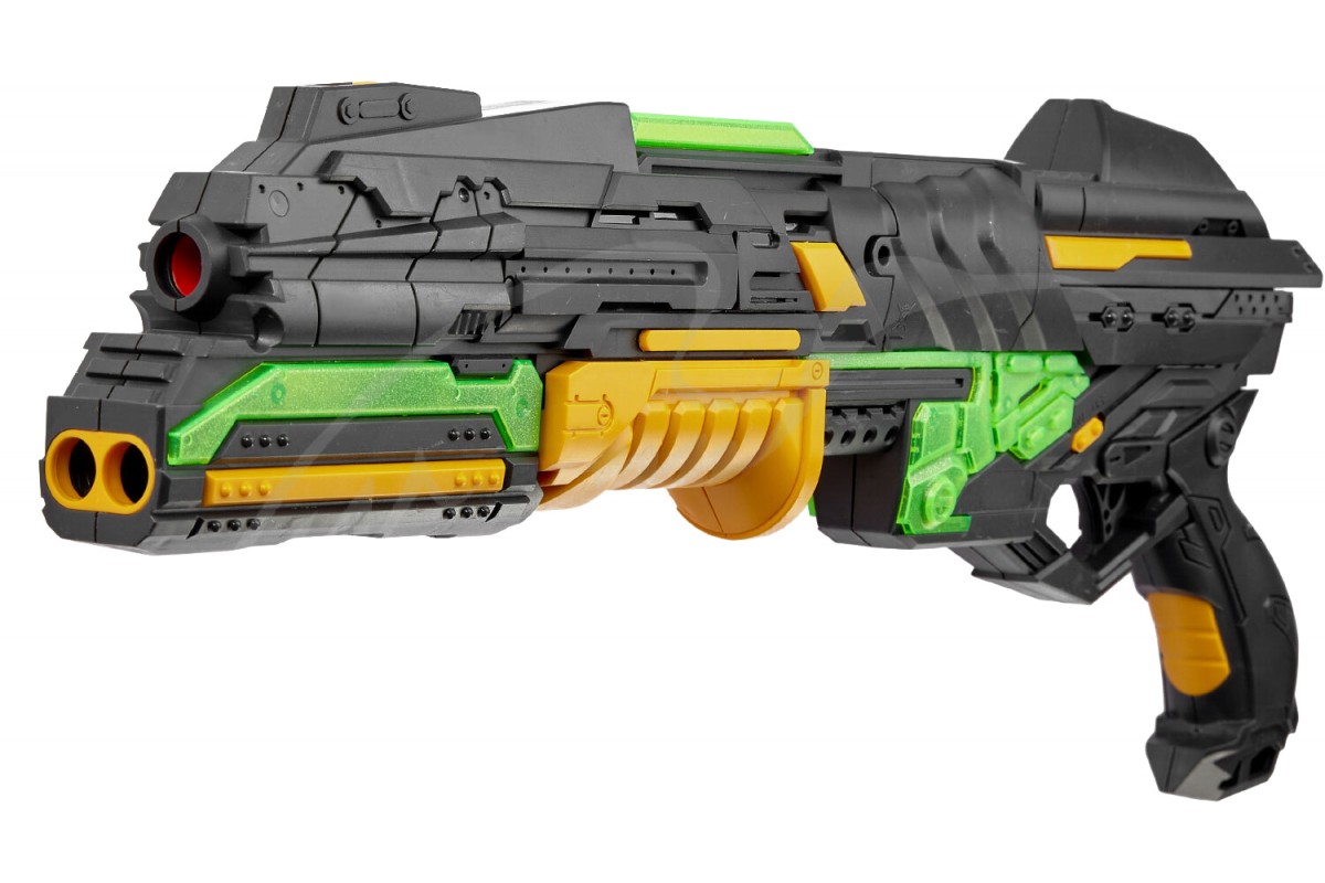 Для того чтобы совершить выстрел, установите патрон (стрелу) в ствол пистолета, потяните затвор-слайдер назад и нажмите на спусковой крючок. В комплекте - 14 стрел. Под стволом имеется отделение для двух запасных стрел.
