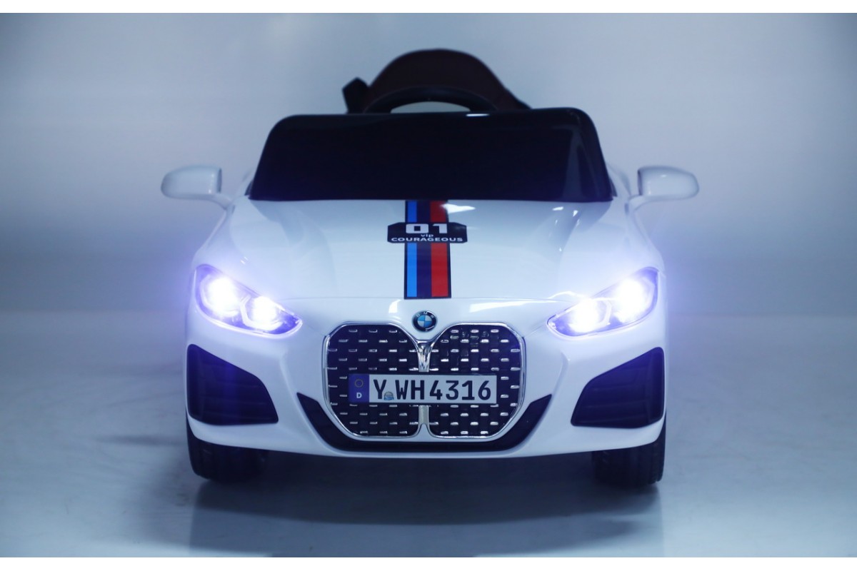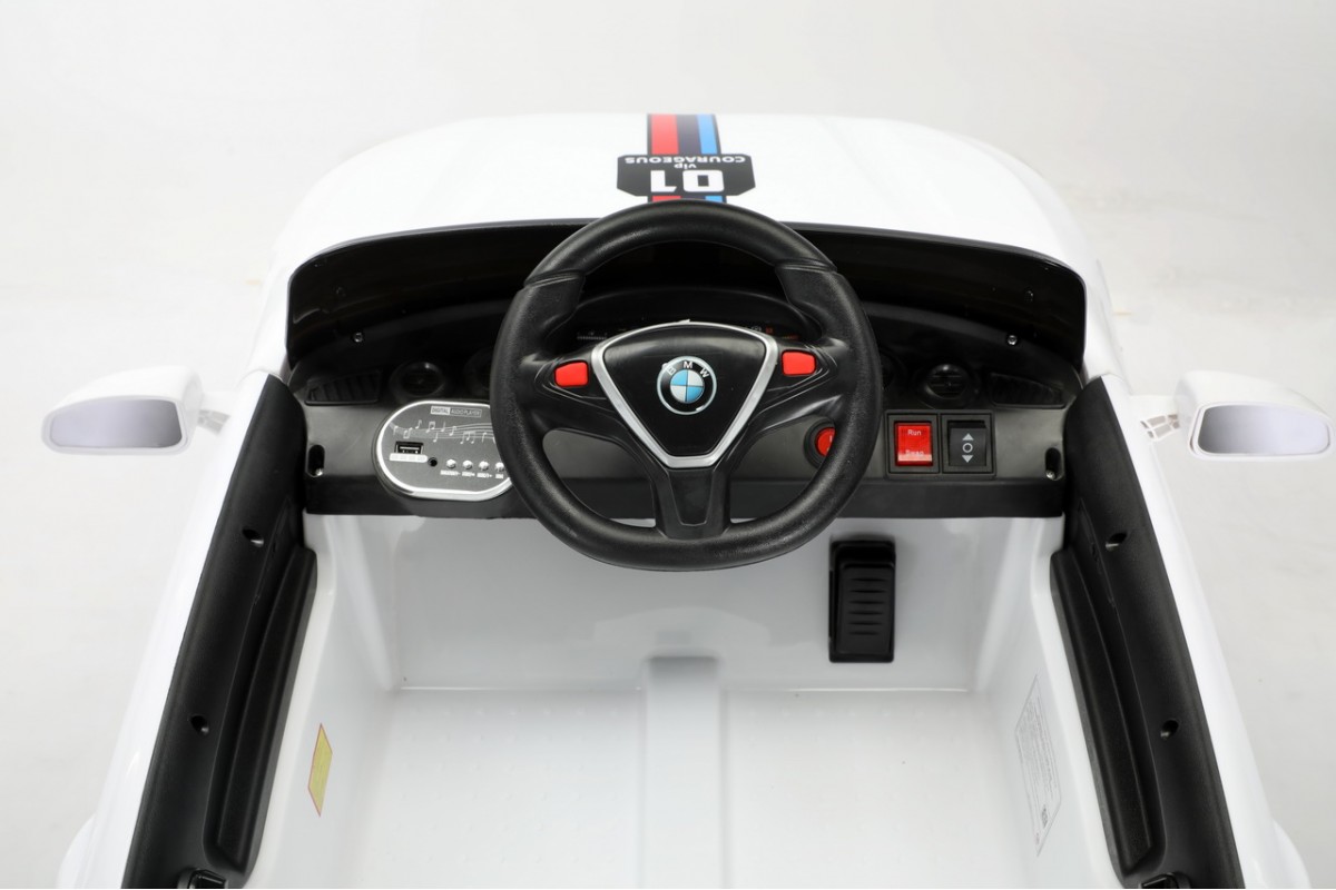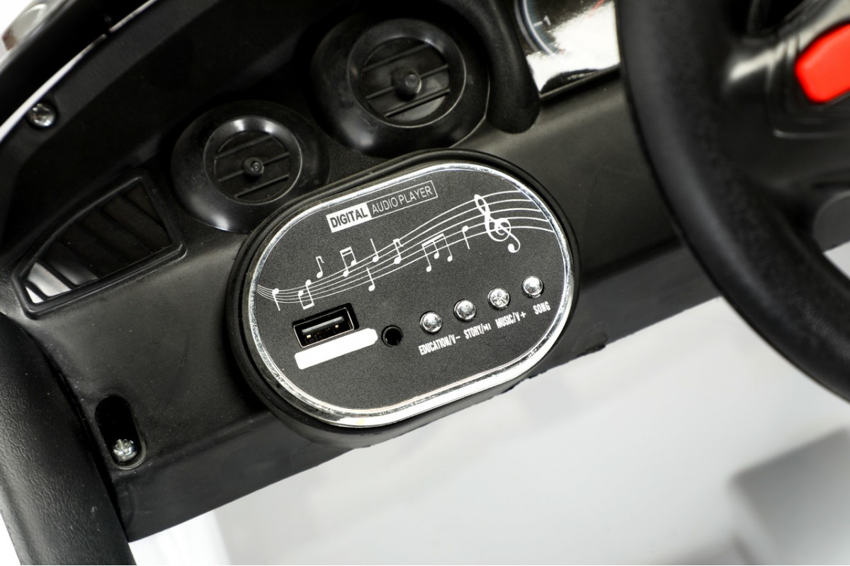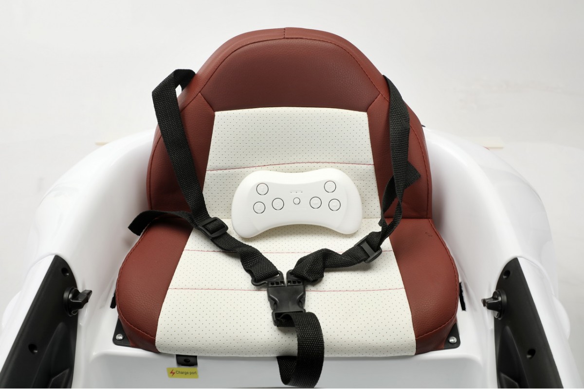 >для детей от 3 лет, одноместная - аккумулятора: 12V/4.5Ah - моторы 4 х 20W - макс нагрузка: 30 кг - передние и задние амортизаторы - резиновые колеса EVA - макс скорость: 6 км/ч - одна скорость вперёд, одна скорость движения назад - педаль газа - режим качалки - индикатор батареи - заводится с кнопки - кожаное сиденье с ремнём безопасности (2-х точечный) - удобный руль (клаксон, музыкальные эффекты) - музыкальные эффекты на приборной панели - разъем для подключения AUX, вход для USB - светодиодные огни передних и задних фонарей - диодная лента на лобовом стекле - в комплекте: аккумулятор, зарядное устройство, пульт дистанционного управления (работает по Bluetooth, радиус действия до 30 метров) гарантия: 6 месяцев