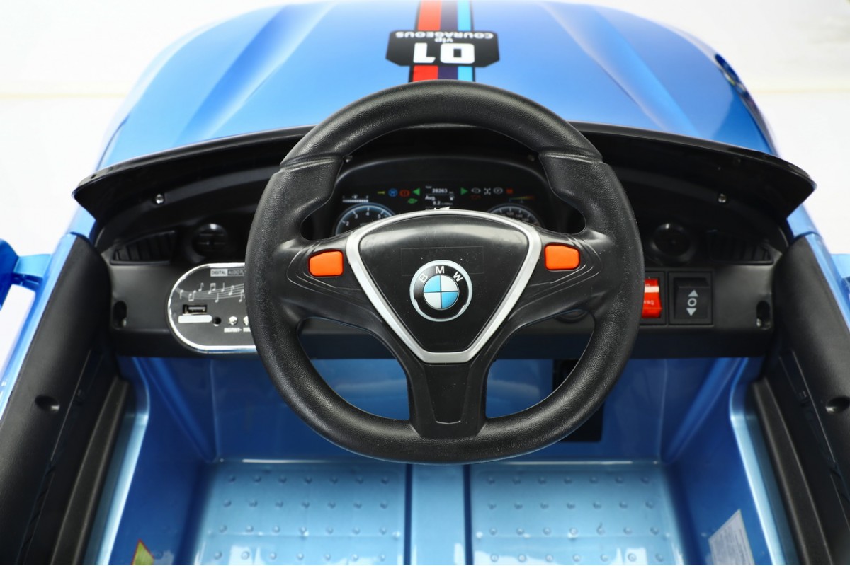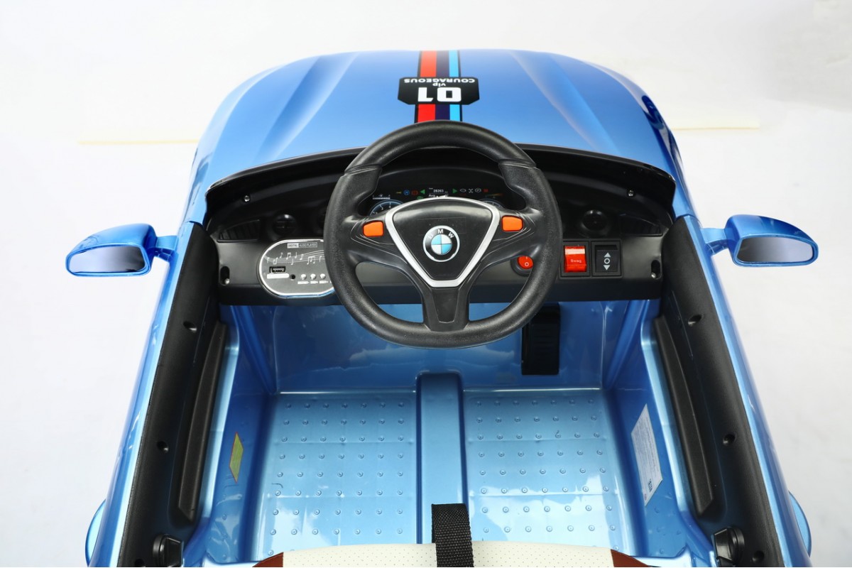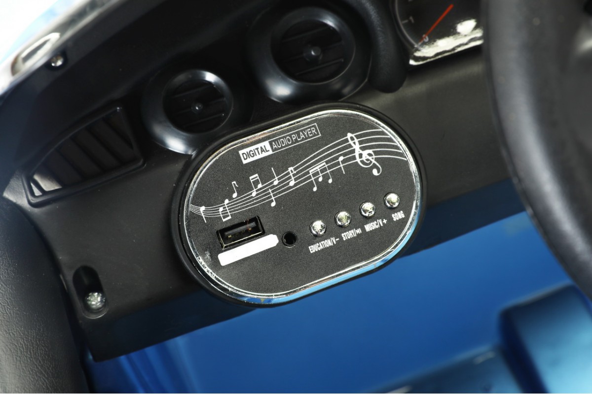 >для детей от 3 лет, одноместная - аккумулятора: 12V/4.5Ah - моторы 4 х 20W - макс нагрузка: 30 кг - передние и задние амортизаторы - резиновые колеса EVA - макс скорость: 6 км/ч - одна скорость вперёд, одна скорость движения назад - педаль газа - режим качалки - индикатор батареи - заводится с кнопки - кожаное сиденье с ремнём безопасности (2-х точечный) - удобный руль (клаксон, музыкальные эффекты) - музыкальные эффекты на приборной панели - разъем для подключения AUX, вход для USB - светодиодные огни передних и задних фонарей - диодная лента на лобовом стекле - в комплекте: аккумулятор, зарядное устройство, пульт дистанционного управления (работает по Bluetooth, радиус действия до 30 метров) гарантия: 6 месяцев