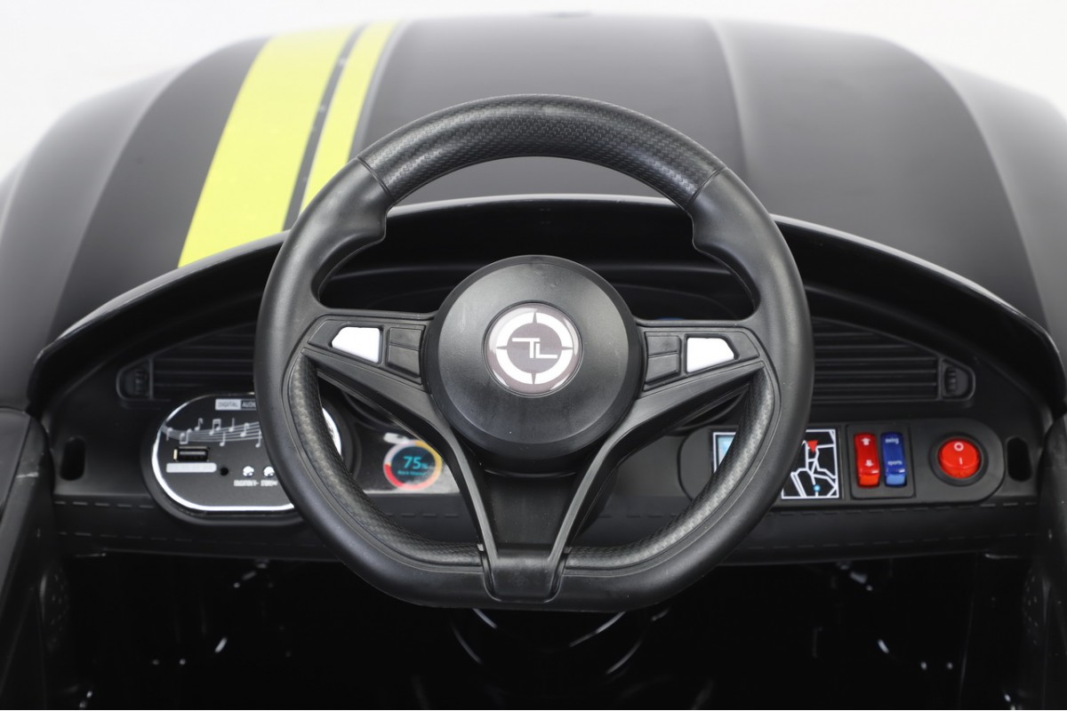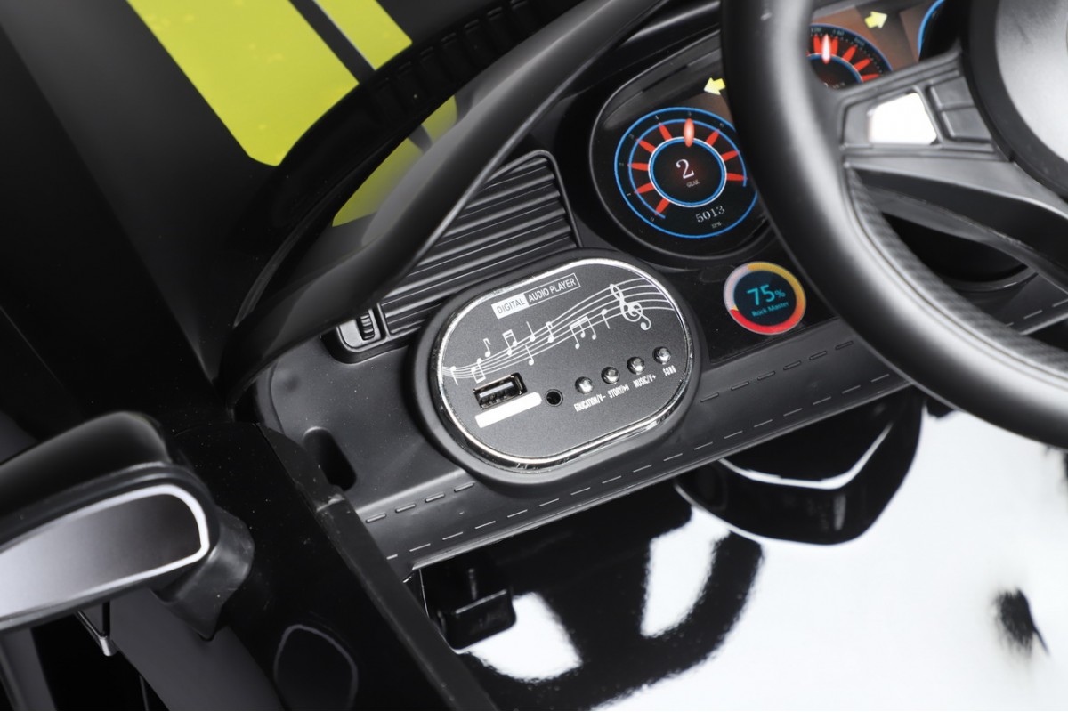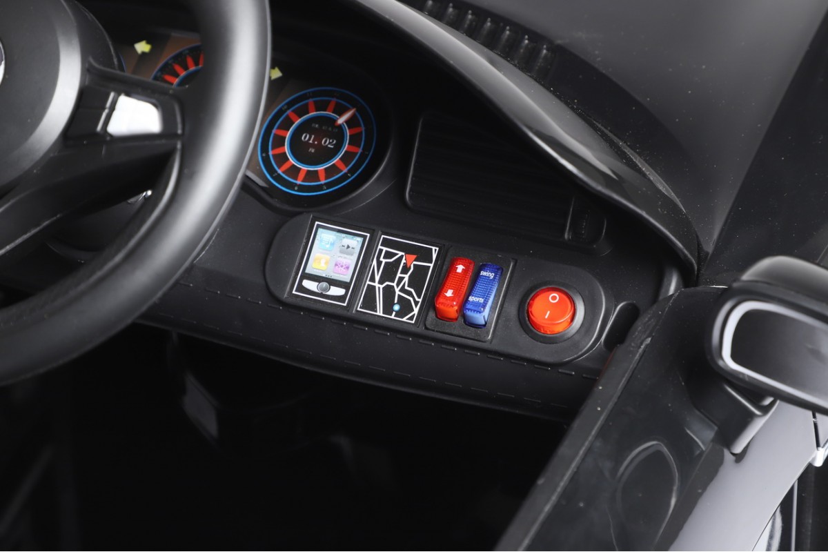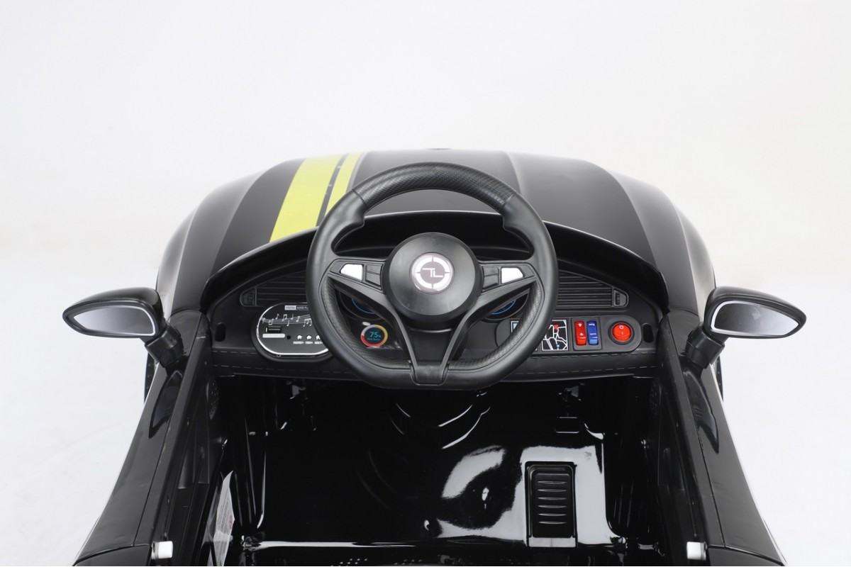 >для детей от 3 лет, одноместная - два аккумулятора: 2*6V/4Ah - двадвигателя по 35W - макс нагрузка: 30 кг - передние и задние амортизаторы - резиновые колеса EVA - макс скорость: 6 км/ч - одна скорость вперёд, одна скорость движения назад - педаль газа - режим качалки - заводится с кнопки - открывающиеся двери - кожаное сиденье с ремнём безопасности (двухточечный) - удобный руль (клаксон, музыкальные эффекты) - музыкальные эффекты на приборной панели - разъем для подключения USB, AUX - светодиодные огни передних и задних фонарей - в комплекте: аккумулятор, зарядное устройство, пульт дистанционного управления (работает по Bluetooth, радиус действия до 30 метров) гарантия: 6 месяцев