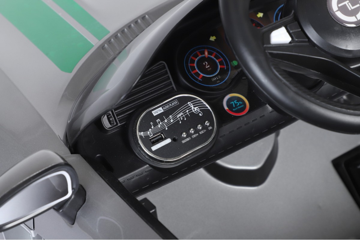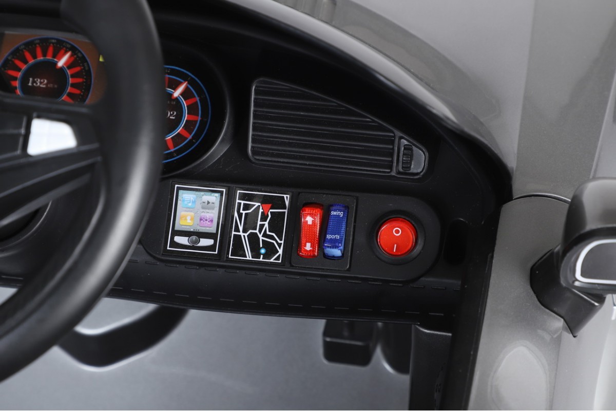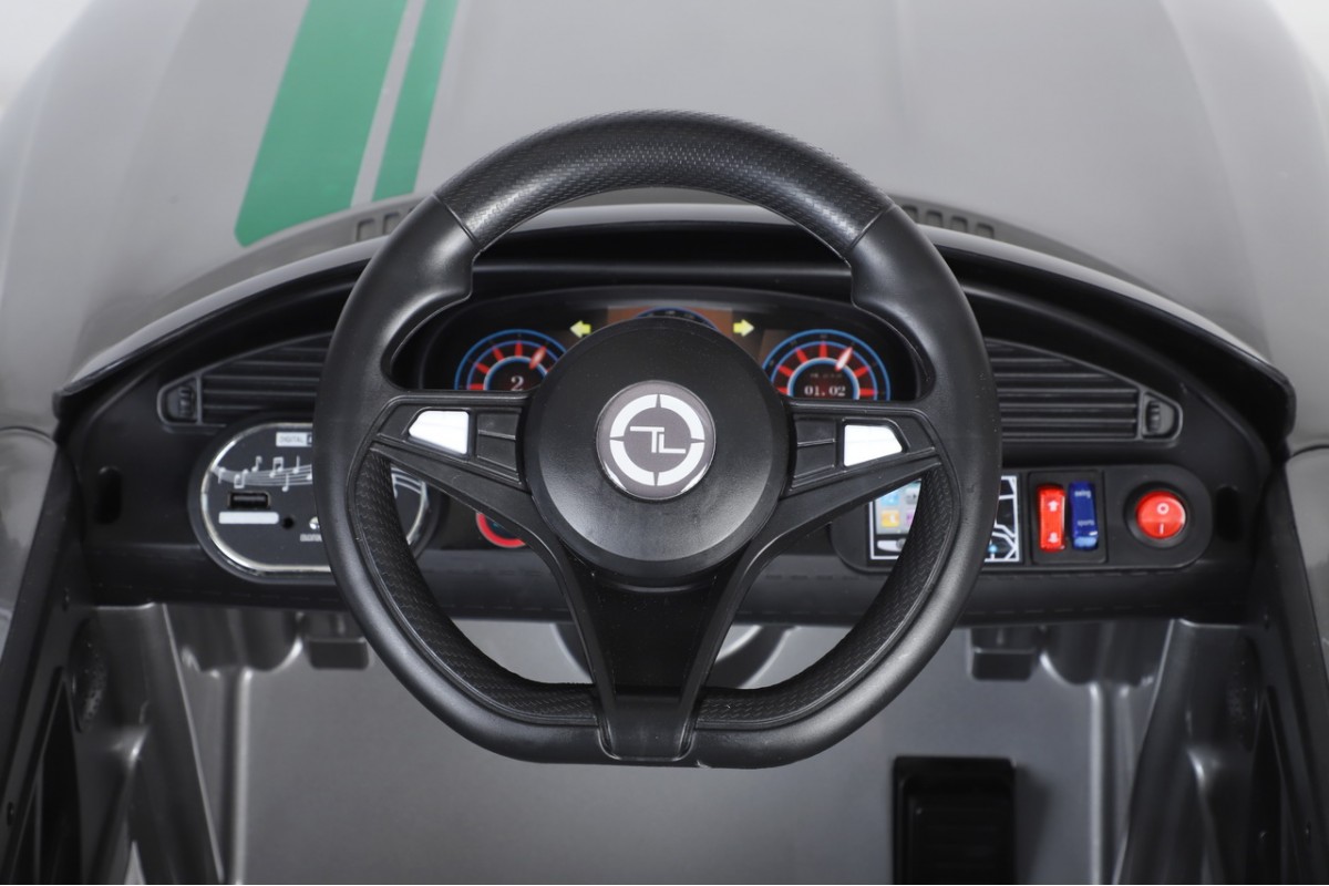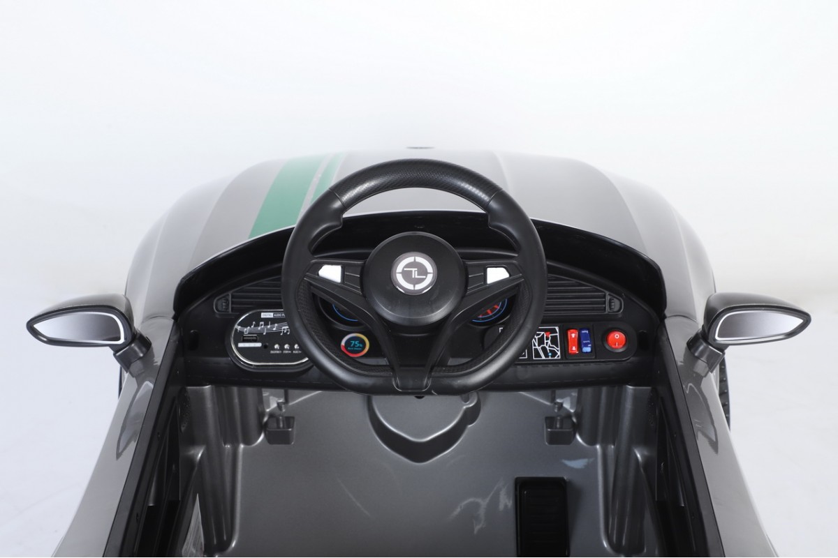 >для детей от 3 лет, одноместная - два аккумулятора: 2*6V/4Ah - двадвигателя по 35W - макс нагрузка: 30 кг - передние и задние амортизаторы - резиновые колеса EVA - макс скорость: 6 км/ч - одна скорость вперёд, одна скорость движения назад - педаль газа - режим качалки - заводится с кнопки - открывающиеся двери - кожаное сиденье с ремнём безопасности (двухточечный) - удобный руль (клаксон, музыкальные эффекты) - музыкальные эффекты на приборной панели - разъем для подключения USB, AUX - светодиодные огни передних и задних фонарей - в комплекте: аккумулятор, зарядное устройство, пульт дистанционного управления (работает по Bluetooth, радиус действия до 30 метров) гарантия: 6 месяцев
