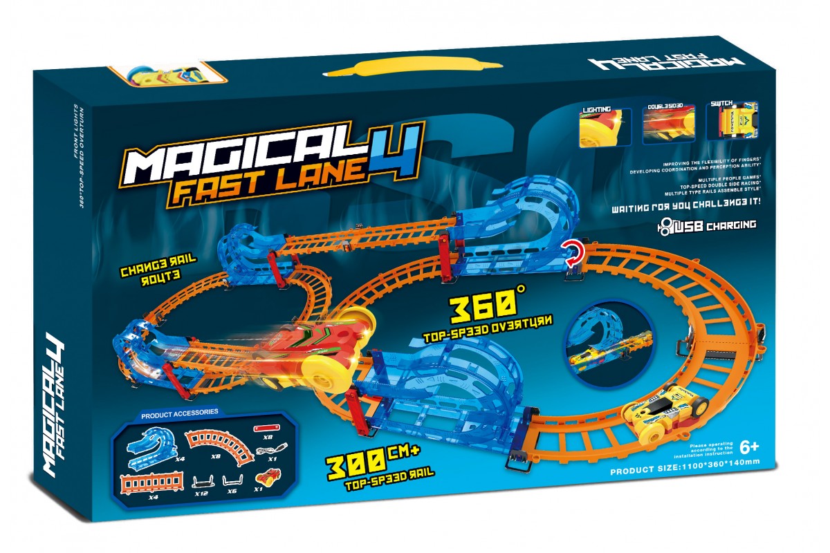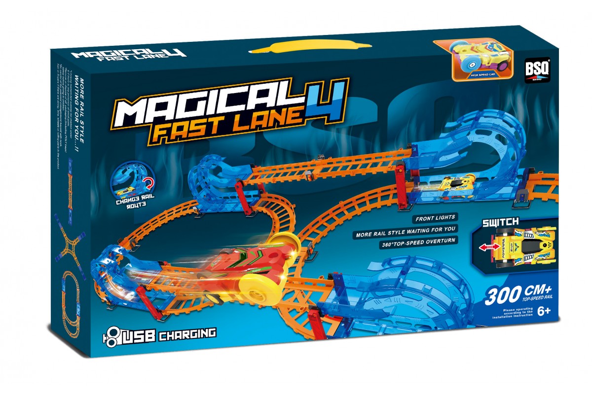 Автотрек BSQ Magical Fast Line, длина полотна 300 см - BSQ-3063 - это новинка на рынке автотреков, в котором машина может двигаться и переворачиваться на 360 градусов во время движения.
