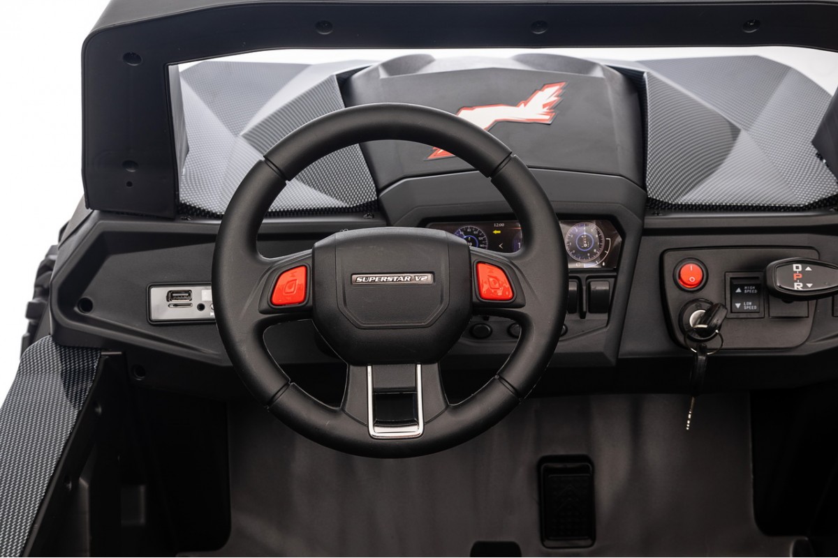- для детей от 3 лет, два посадочных места (руль смещен в левую сторону для удобства водителя)