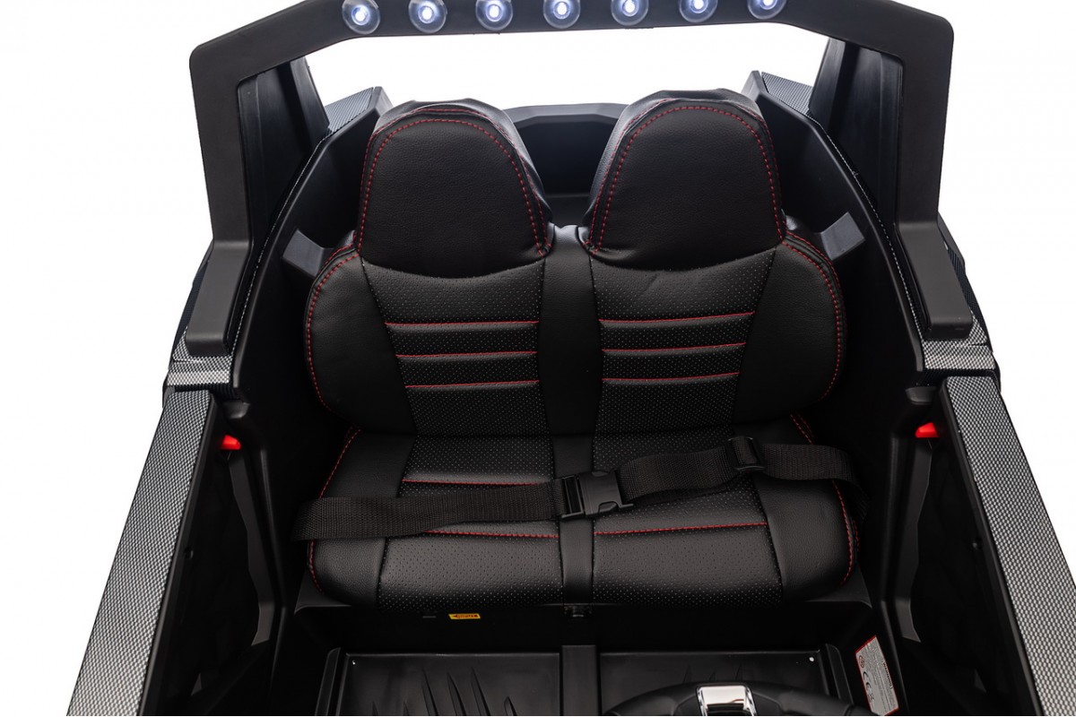 - открывающиеся двери, кожаное сиденье с ремнями безопасности