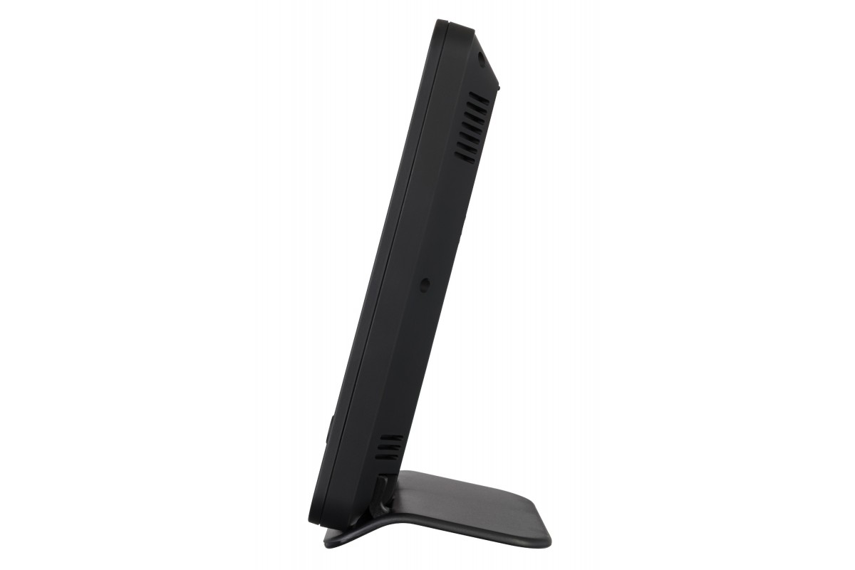 База снабжена часами, календарем и будильником, также она проводит измерения внутри помещения. Ее можно установить на подставку или повесить на стену. Доступ к настройкам осуществляется с передней панели – тут размещены основные кнопки управления. Прямо над кнопками – монохромный экран, имеющий подсветку.