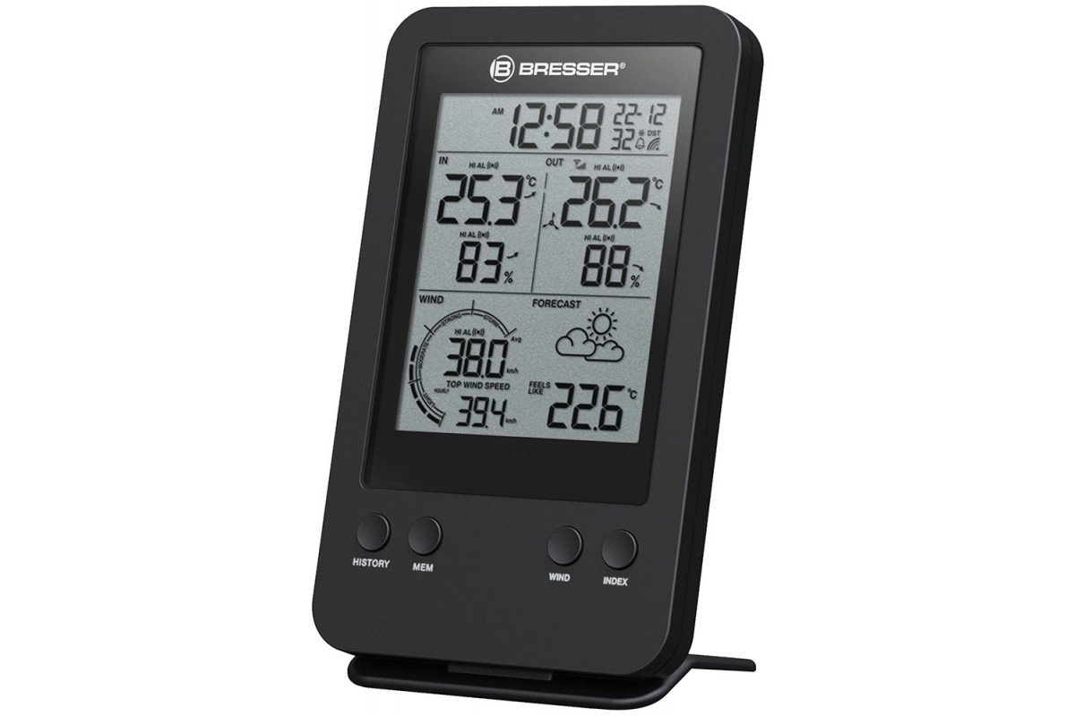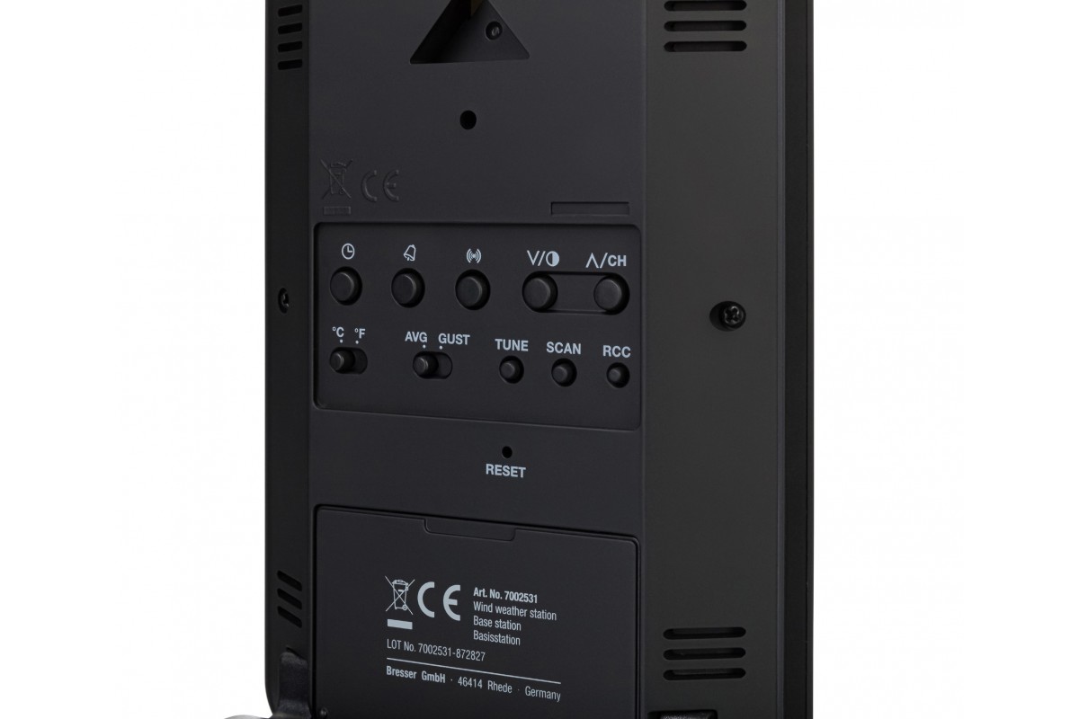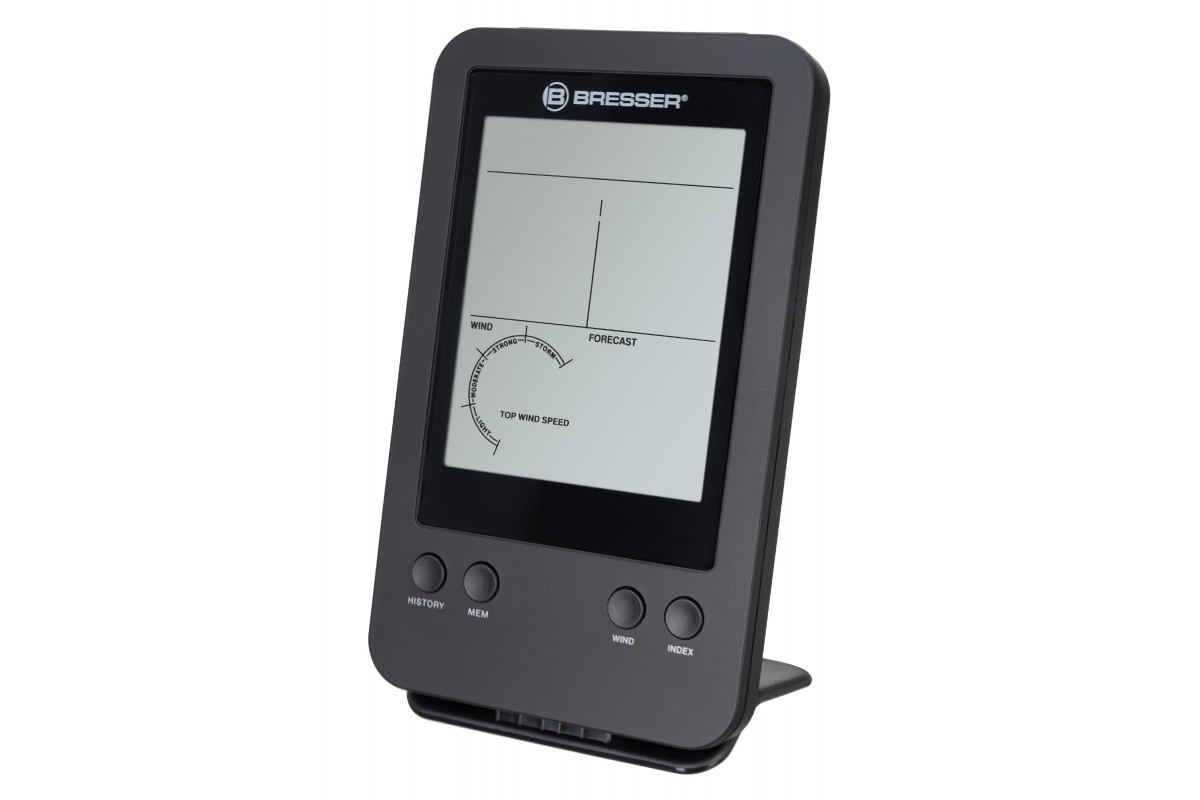 База для анемометра (ветромера) Bresser «3 в 1» – это основной модуль с ЖК-экраном, который можно подсоединить к уже имеющейся метеостанции. Таким образом, в квартире будет два прибора, собирающих данные с подключенных датчиков. Так как связь между ними осуществляется по радиоканалу (а значит, без прокладки проводов), их можно будет без проблем установить в разные комнаты. Также эту базу можно использовать для замены основного модуля, например в случае его поломки.