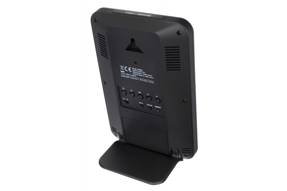 Эта база позволяет дополнить систему из уже имеющихся у пользователя метеостанции Bresser «5 в 1» и подключенных к ней внешних датчиков. Она работает как основной модуль метеостанции: показывает время и дату, имеет будильник, проводит измерения внутри помещения и отображает измерения датчиков.