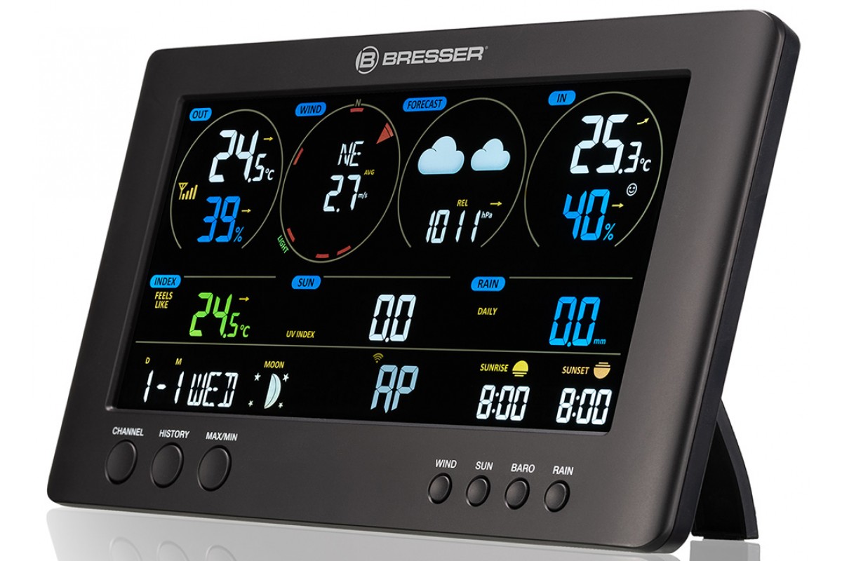 База для метеостанций Bresser Wi-Fi ClearView выручит в ситуации, если основной модуль метеостанции сломался или был утерян при переезде. Никаких проблем с подключением к имеющимся датчикам не возникнет – все будет работать как и прежде. База будет связываться с ними по радиоканалу и отображать всю собираемую информацию на встроенном экране.
