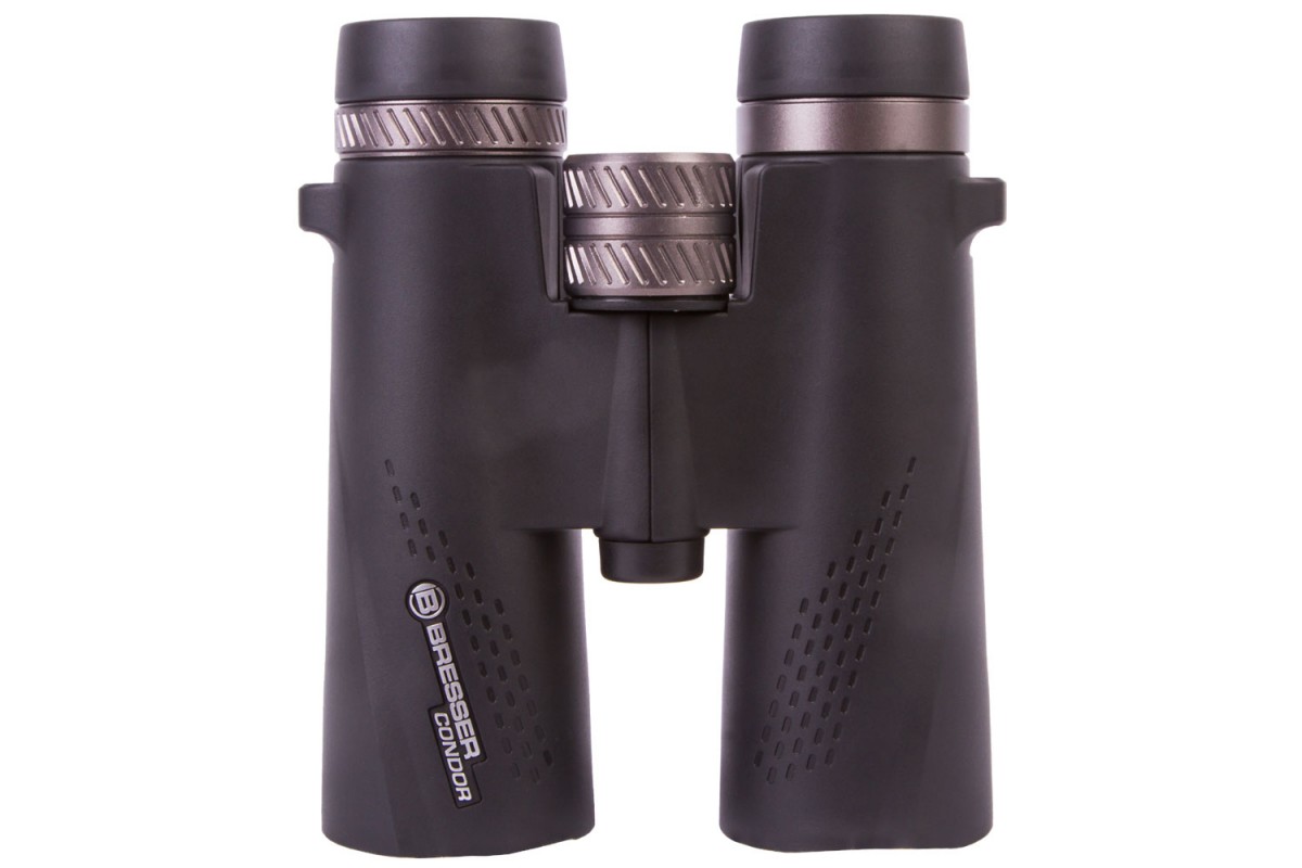 Оптика быстро настраивается под нужды наблюдателя. В бинокле предусмотрены регулировка межзрачкового расстояния, настройка диоптрий на правом окуляре, возможность выбора положения поворотно-выдвижных наглазников. Барабан фокусировки расположен в центре. Bresser Condor UR 10x42 можно устанавливать на штатив.