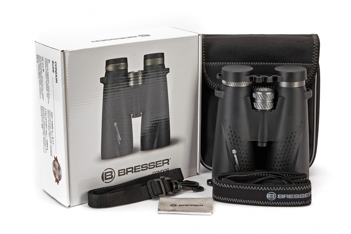 Бинокль Bresser Condor UR 8x56 – это, прежде всего, высокая светосила, благодаря которой его можно использовать даже для изучения звездного неба. Возможности оптики подходят также для наблюдений за дикой природой, выслеживания дичи на охоте, обзорных наблюдений во время похода или путешествия. Бинокль достаточно габаритный, относится к классу полевых, но обладает отличными оптическими характеристиками и всепогодной конструкцией. Этот бинокль не подведет даже в экстремальных условиях.