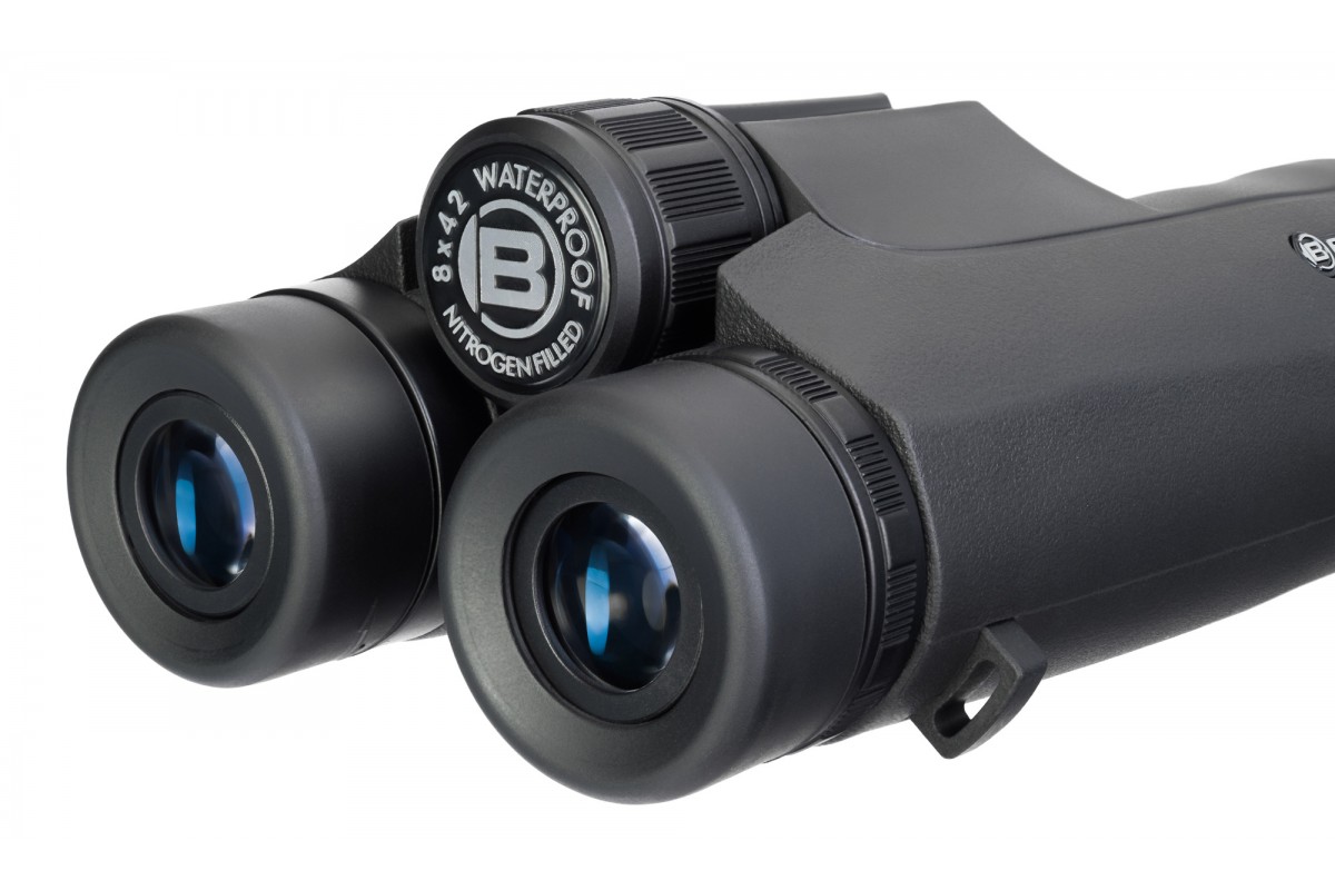Оптика создана на базе призм и линз из стекла BK-7. Многослойное просветление делает изображение ярким и ясным, мелкие детали хорошо различимы даже при наблюдениях в пасмурную погоду и сумерках, когда внешнего освещения заметно меньше, чем при ярком солнце. Фокусировочный барабан расположен в центре, прямо под пальцами, поэтому очень удобно проводить настройку резкости. Предусмотрена корректировка диоптрий в широком диапазоне, также можно отрегулировать расстояние между зрачками и положение поворотно-выдвижных наглазников.
