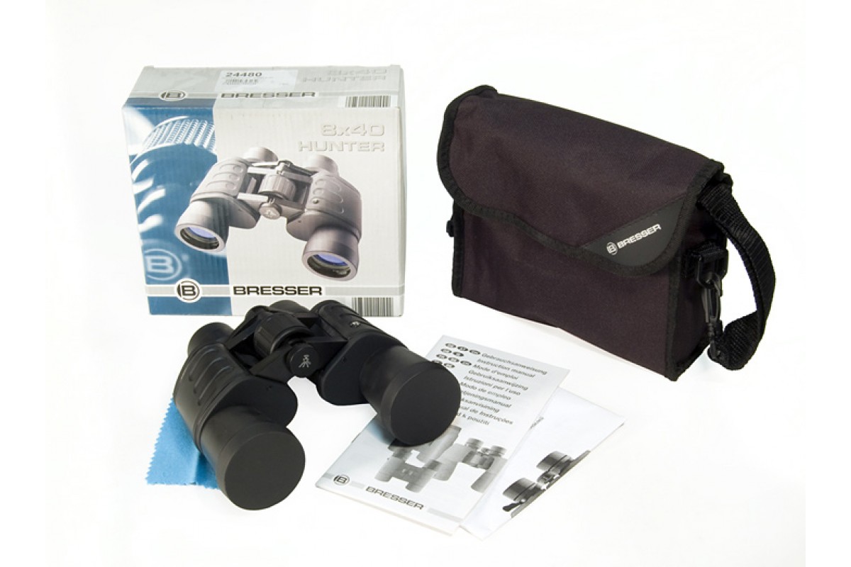 Светосильный бинокль Bresser Hunter 8x40 можно использовать в сумерках и тумане. В приборе реализована оптическая система призм Porro, линзы изготовлены из оптического стекла BK-7 с многослойным просветлением. Бинокль выдает увеличение 8 крат при диаметре объективов 40 мм. Минимальное фокусное расстояние – 5 м. Бинокль подойдет туристам, охотникам, рыболовам и всем любителям активного отдыха на природе. В приборе заложена возможность коррекции межокулярного расстояния и диоптрий. В комплект входят адаптер для штатива, крышки объективов, футляр для хранения, инструкция, гарантийный талон, салфетка и упаковочная коробка.