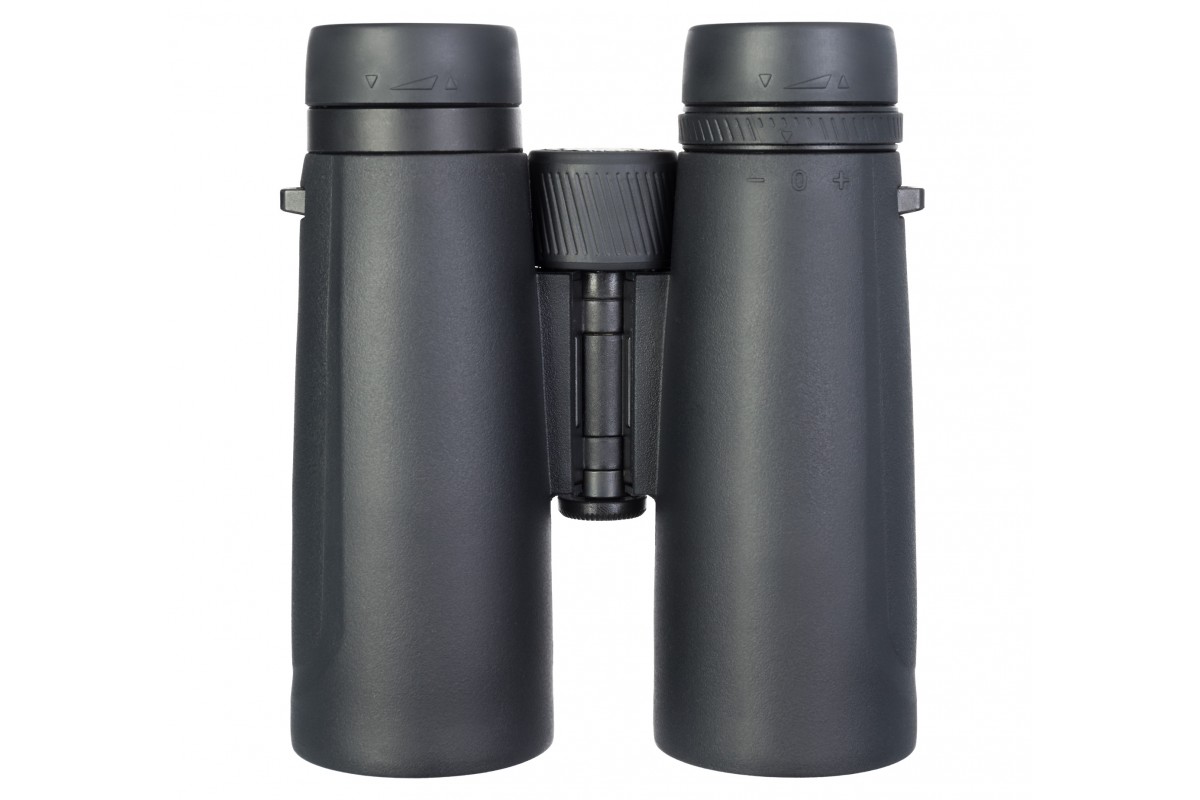 Удобно, что бинокль можно настроить под свои нужды. Резкость регулируется при помощи крупного центрального барабана, который приближен к окулярам, а значит, до него проще дотягиваться. На правом окуляре есть кольцо диоптрийной коррекции. Наглазники окуляров можно выдвигать и вдвигать для большего удобства наблюдений.