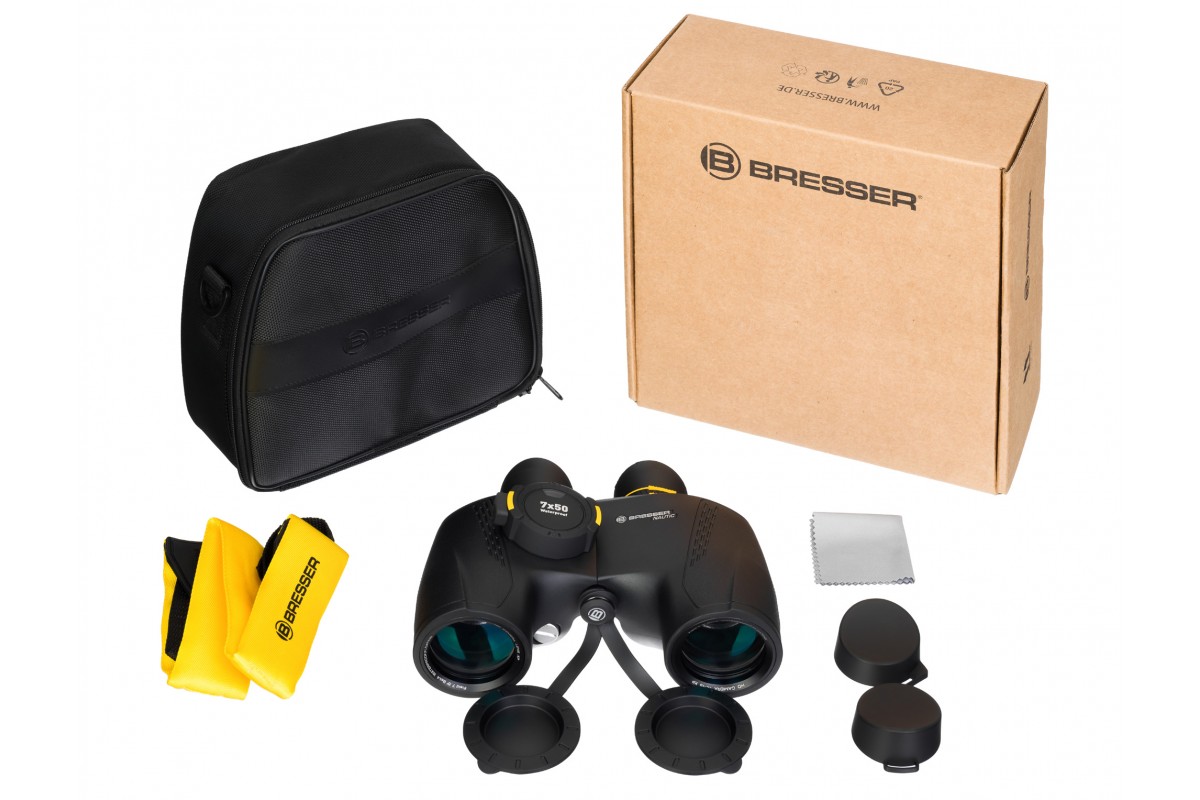 Морской бинокль Bresser Nautic 7x50 Gen. II – незаменимый оптический инструмент для наблюдений на воде. Он облагает рядом неоспоримых преимуществ: водозащищен, оснащен компасом и измерительной шкалой, не боится конденсата, обладает широким полем зрения и 7-кратным увеличением. Его возможности оптимальным образом подходят для наблюдений с борта корабля, участия в спортивных соревнованиях на воде и отдыха на рыбалке.