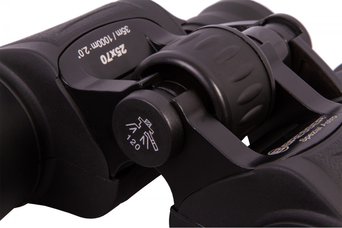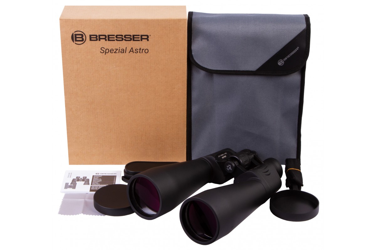 Bresser Spezial Astro 25x70 – астрономический бинокль на Porro-призмах. Он обладает очень высокой светосилой и обеспечивает приближение в 25 раз. Для стабилизации картинки бинокль рекомендуется устанавливать на штатив. Прибор станет настоящей находкой для натуралиста и астронома-любителя.