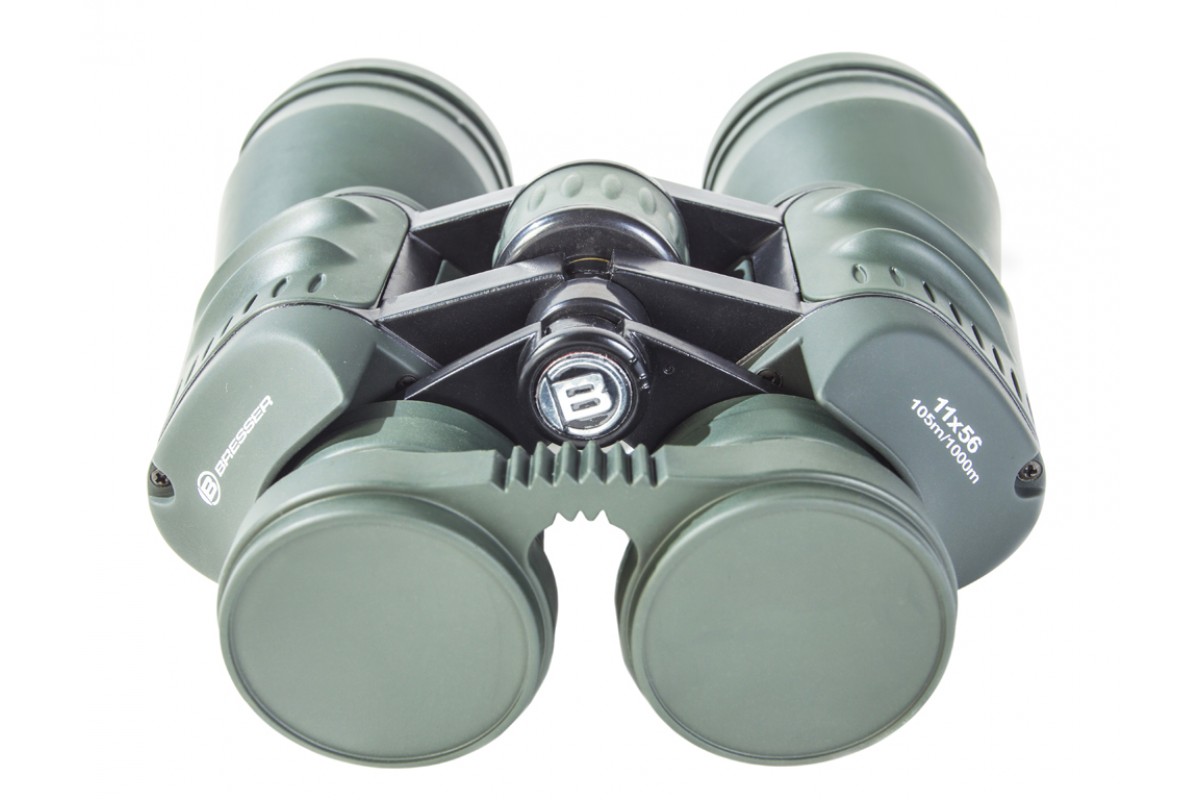 Bresser Spezial-Jagd 11x56 – хороший инструмент для начальных астрономических наблюдений. Наземные объекты, расположенные на значительном удалении от наблюдателя, тоже не скроются от зоркого взгляда, вооруженного таким биноклем. Светосильные 56-миллиметровые объективы способны дать яркое изображение даже в условиях пониженной освещенности. Оптические элементы прибора изготовлены из оптического стекла BaK-4 и имеют полное многослойное просветляющее покрытие. Изображение без аберраций – одна из характеристик данной модели. Пользователь может подстроить диоптрии на окулярах. Выдвижные наглазники позволяют вести наблюдения в очках. Фокусировка центральная. Корпус бинокля обрезинен и защищает прибор от пыли. В комплекте: бинокль пылезащитные крышки для линз ремешок чехол инструкция по эксплуатации и гарантийный талон