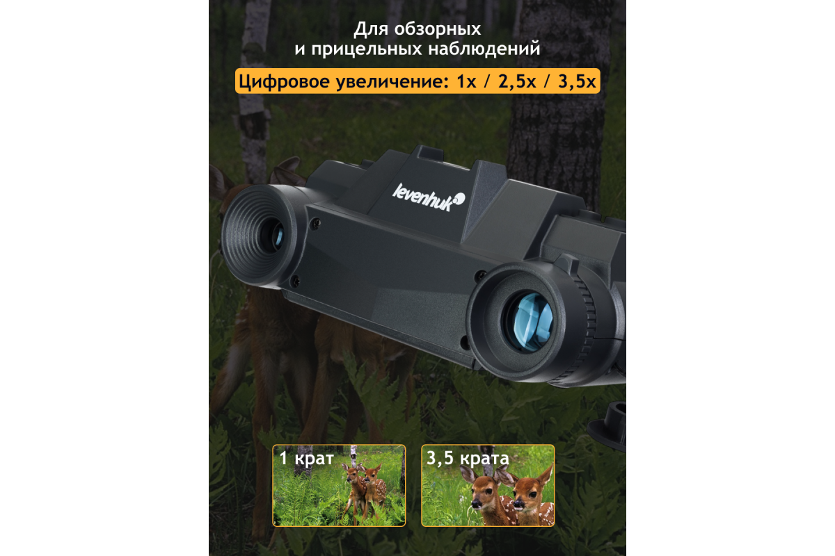 • Многослойное просветляющее покрытие линз, диоптрийная подстройка, цифровое увеличение 1х, 2,5х и 3,5х