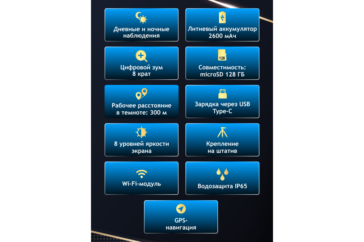 · Модули Wi-Fi и GPS – для совместного использования ПНВ со смартфоном и ориентирования на местности
