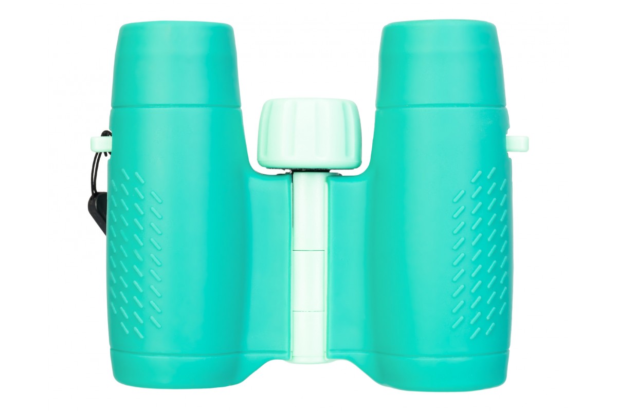 В основе оптической системы лежат современные призмы roof, благодаря которым удалось добиться таких небольших размеров бинокля. Корпус обрезинен, причем шероховатая поверхность покрытия улучшает хват – бинокль надежно лежит в руках. Элементы управления расположены таким образом, чтобы ребенку было легко с ними взаимодействовать: например, барабан фокусировки вынесен максимально близко к окулярам, поэтому его удобно вращать, не снимая руку с корпуса бинокля. Есть регулировка межзрачкового расстояния, также предусмотрена возможность складывать и раскладывать наглазники. Последняя функция будет полезна, если ребенок носит очки и будет вести наблюдения в них – это повысит комфорт использования. Материал наглазников – мягкая безопасная резина.