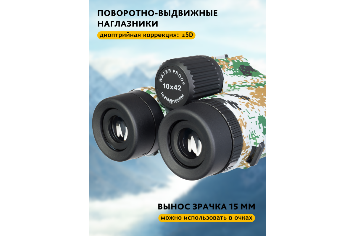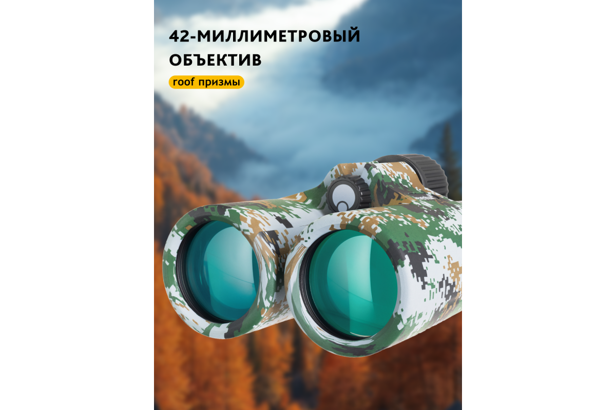 • Компактный 10-кратный бинокль, идеальный для охоты