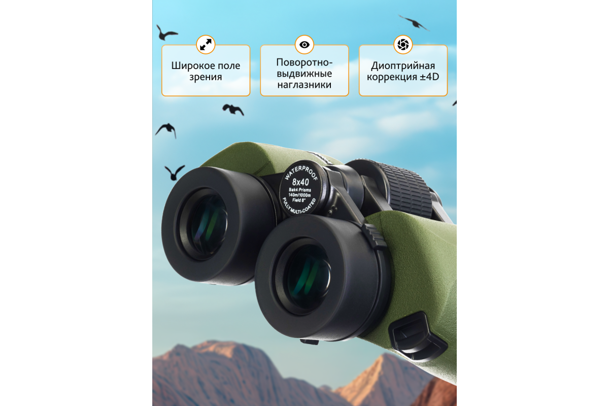 • Полное просветление оптики, призмы Porro, широкое поле зрения