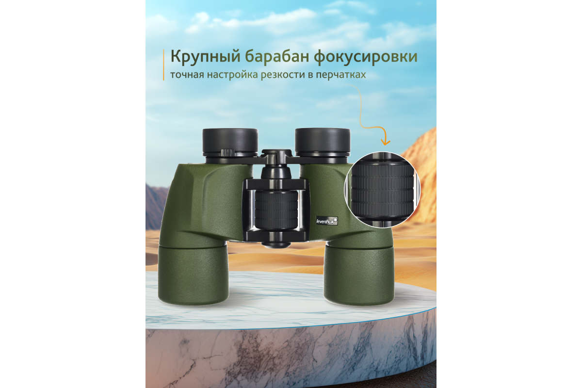 Основа оптической системы бинокля Levenhuk Army 8x40 – полноразмерные призмы Porro. Высококачественное стекло BaK-4 покрыто полным многослойным просветлением, благодаря чему оптика формирует яркое, контрастное, отчетливое изображение. Сфокусироваться можно на объектах всего в 3 метрах от наблюдателя, настройка резкости производится на обоих объективах одновременно с помощью крупного барабана по центру. Поворотно-выдвижные наглазники, большой вынос зрачка и диоптрийная коррекция позволяют быстро подстроить бинокль под зрение любого пользователя и вести наблюдения, не снимая солнцезащитных очков или тактической маски.