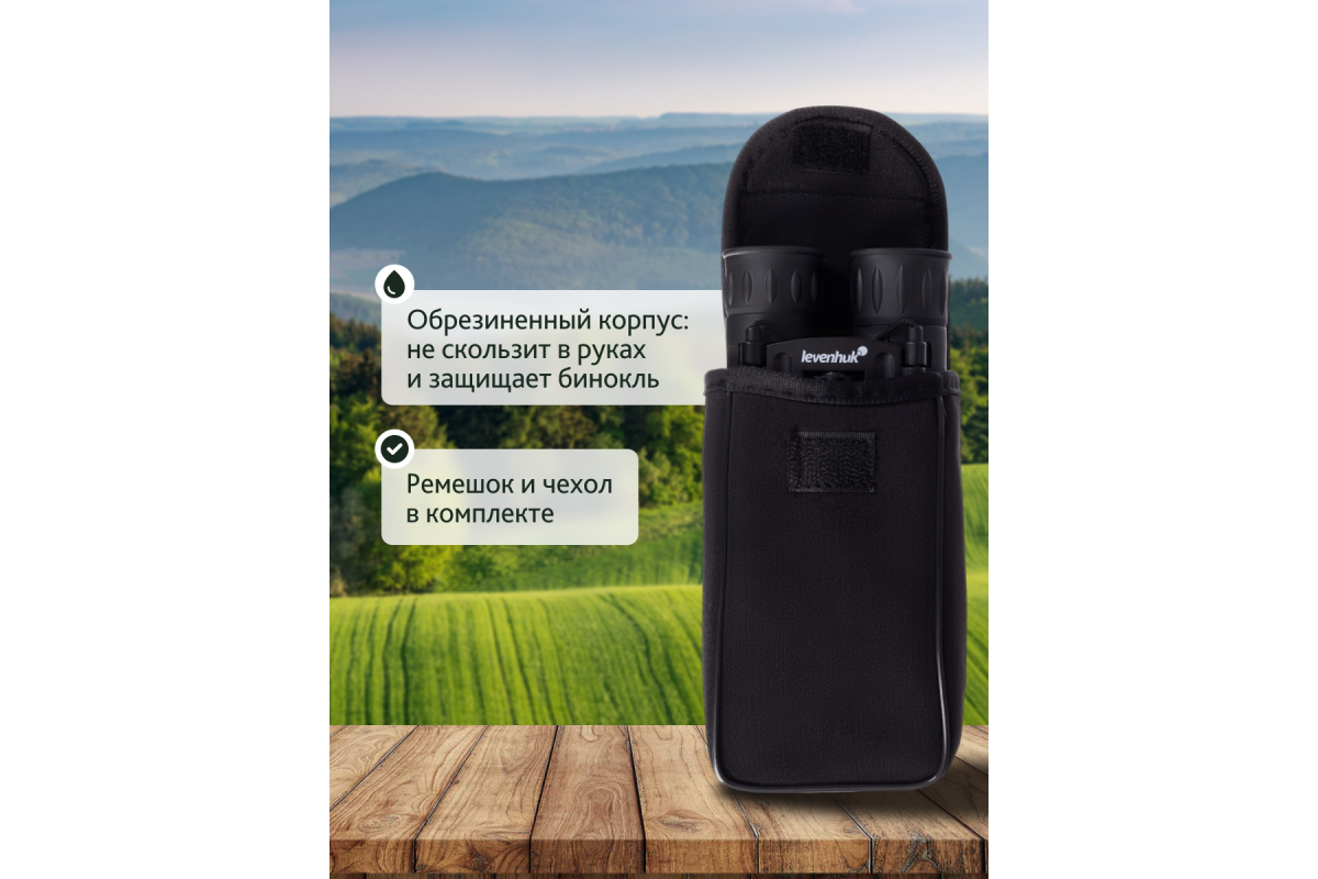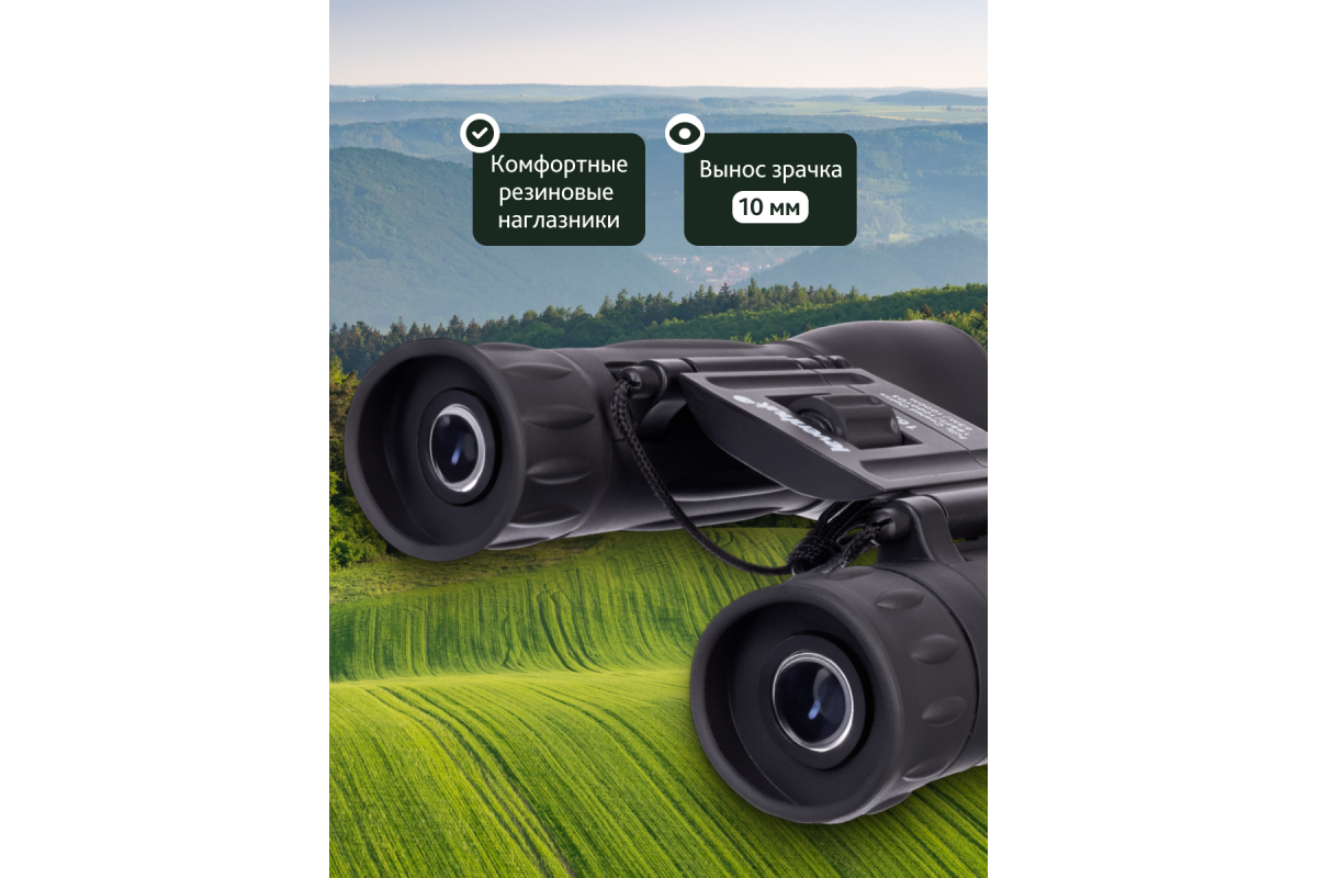 Бинокль можно подстроить под особенности его владельца. Вы можете поменять межзрачковое расстояние и, если нужно, настроить диоптрии. Окуляры снабжены мягкими наглазниками – они позволяют вести наблюдения максимально комфортно. Корпус покрыт резиновой оболочкой, которая гасит удары и защищает оптику от грязи и пыли.