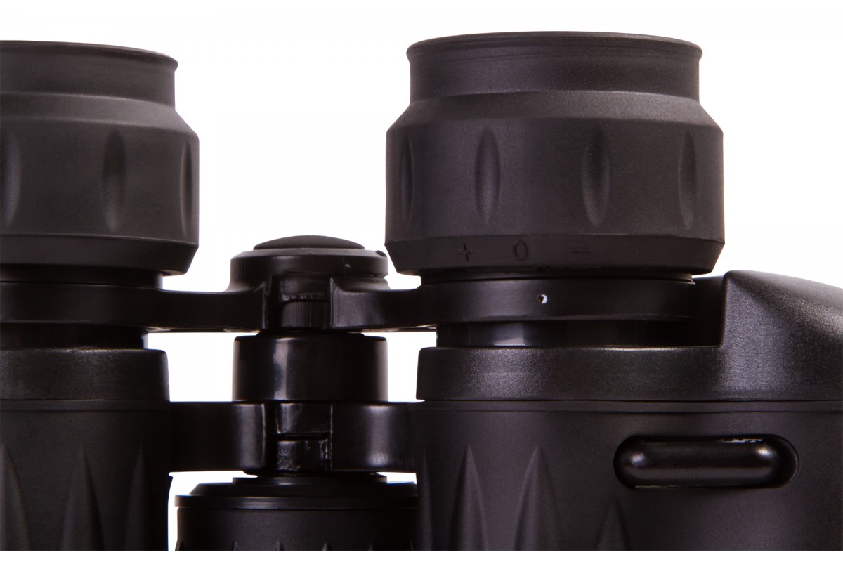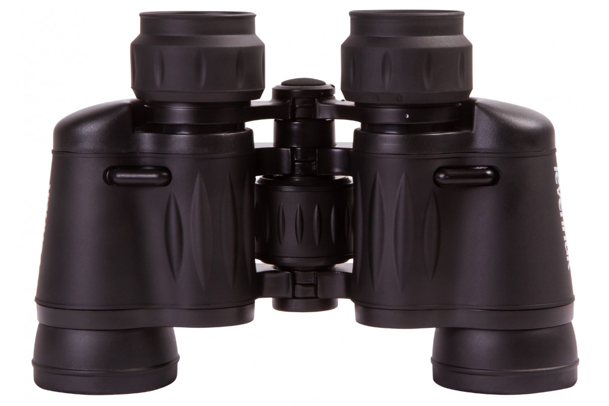 Линзы и призмы сделаны из просветленного оптического стекла BK-7. Изображение получается четким и ясным, а широкий обзор, который обеспечивает оптика, позволяет рассматривать протяженные области и следить за группами животных и людей. На правом окуляре находится кольцо диоптрийной коррекции, с помощью которого можно настроить оптику под особенности зрения наблюдателя. Наглазники окуляров можно складывать – это удобно, если необходимо вести наблюдения в очках. Для регулировки резкости используется центральный барабан фокусировки.
