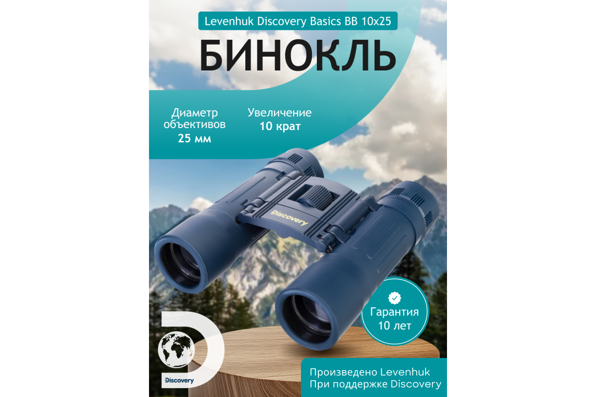 Бинокль Levenhuk Discovery Basics BB 10x25 собран на базе roof-призм, что делает его компактным и позволяет демонстрировать хорошие оптические возможности. Оптика четко передает мелкие детали, позволяет изучать окружающий мир на увеличении 10 крат и обеспечивает широкий обзор. Бинокль пригодится тем, кто много путешествует, интересуется дикой природой и любит смотреть спортивные соревнования на стадионе.
