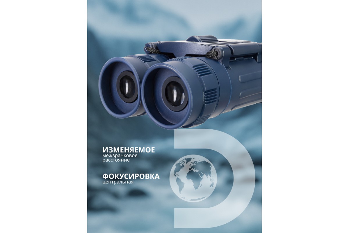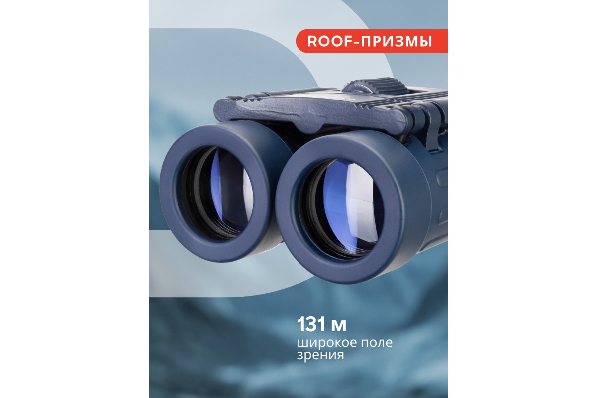 В основе оптической схемы лежат roof-призмы, увеличение бинокля составляет 8 крат. Установка на штатив необязательна, так как передаваемая картинка стабильна, дрожания не наблюдается. Поле зрения широкое, позволяющее окидывать одним взглядом протяженные области. Регулировка резкости реализована классическим образом – настройка производится при помощи центрального барабана.