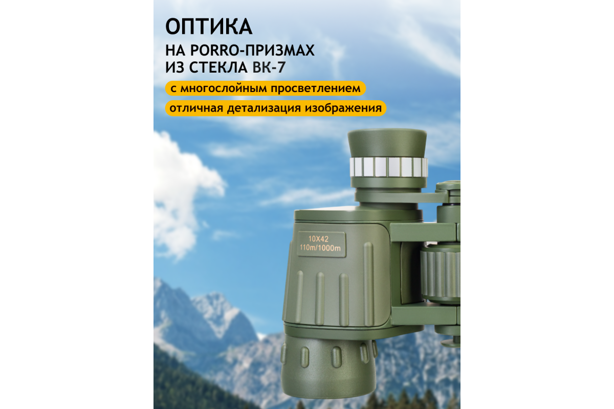 • Влагозащищенный полевой Porro-бинокль с увеличением 10 крат