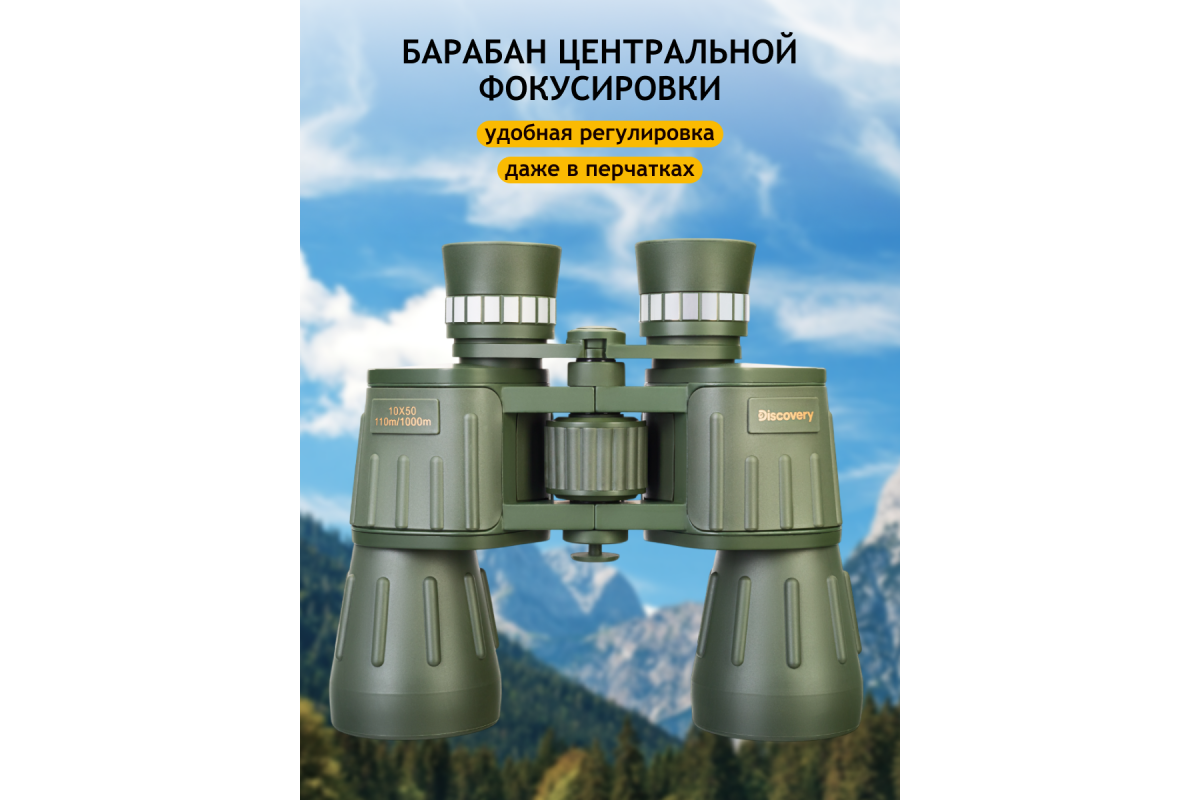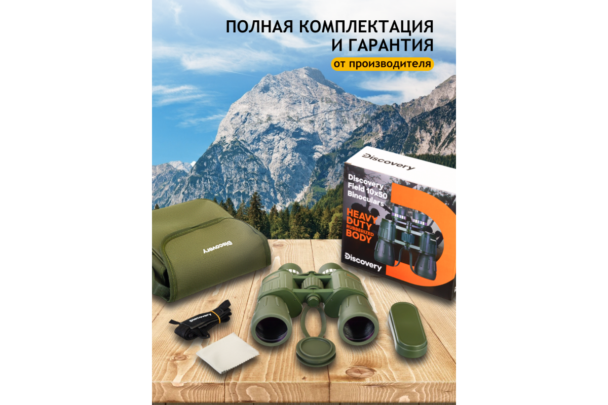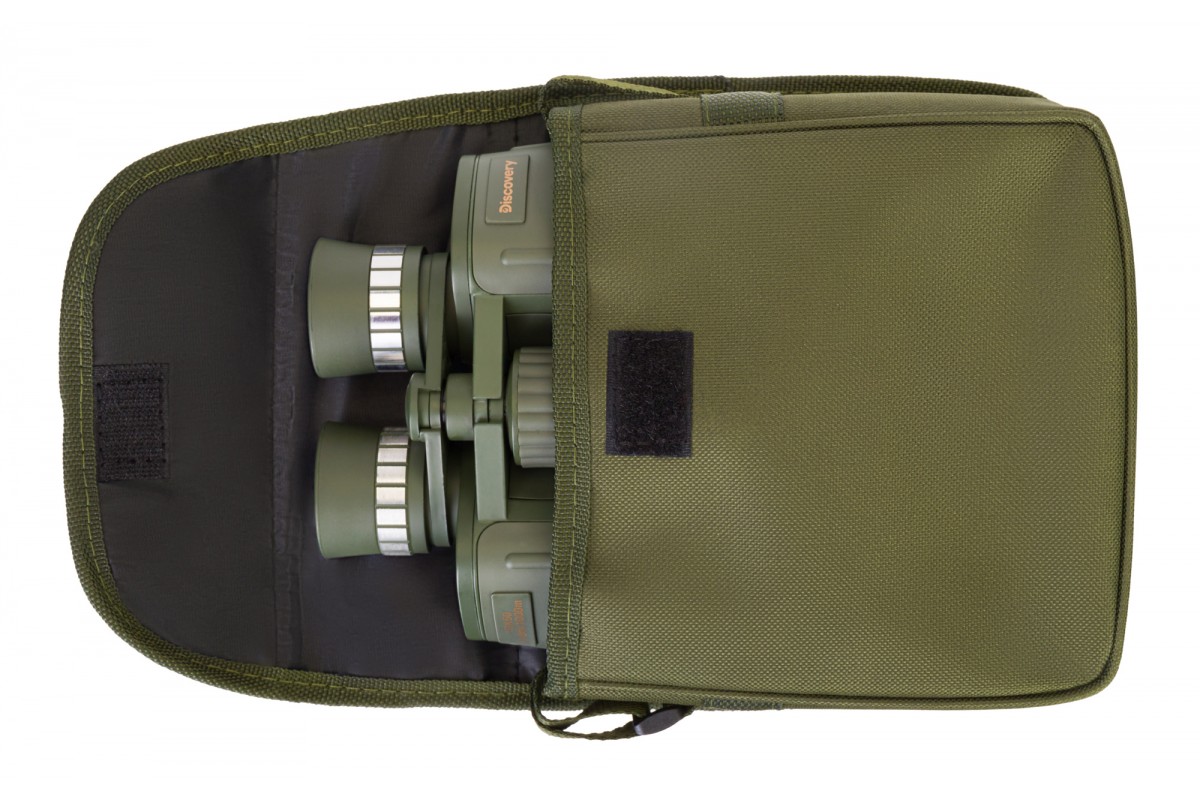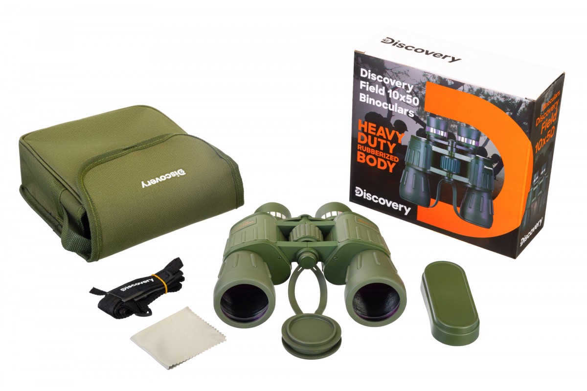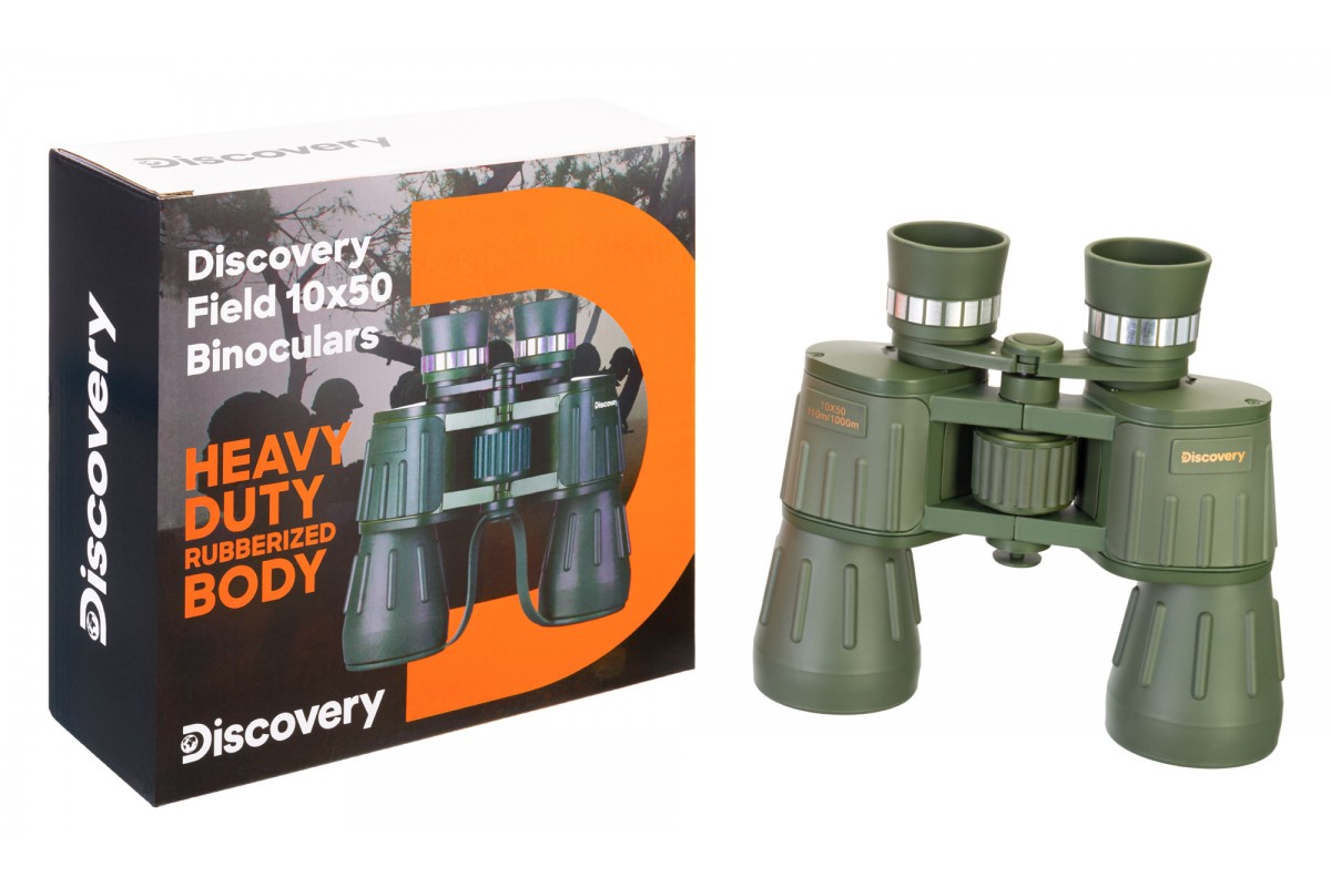 Бинокль Levenhuk Discovery Field 10x50 оснащен удобным обрезиненным барабаном центральной фокусировки, предусмотрена опция подстройки диоптрий. Материалом оптики послужило оптическое стекло марки BK-7. Корпус изготовлен из легкого, но одновременно прочного пластика и обрезинен. Поэтому внутренние элементы конструкции защищены от повреждений при случайном падении бинокля и от попадания влаги. Благодаря рельефной поверхности прибор можно надежно удерживать даже мокрыми руками.