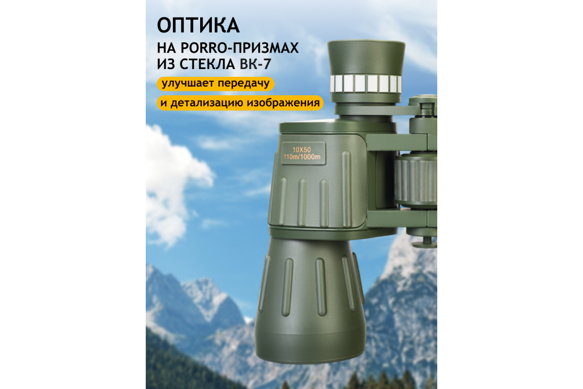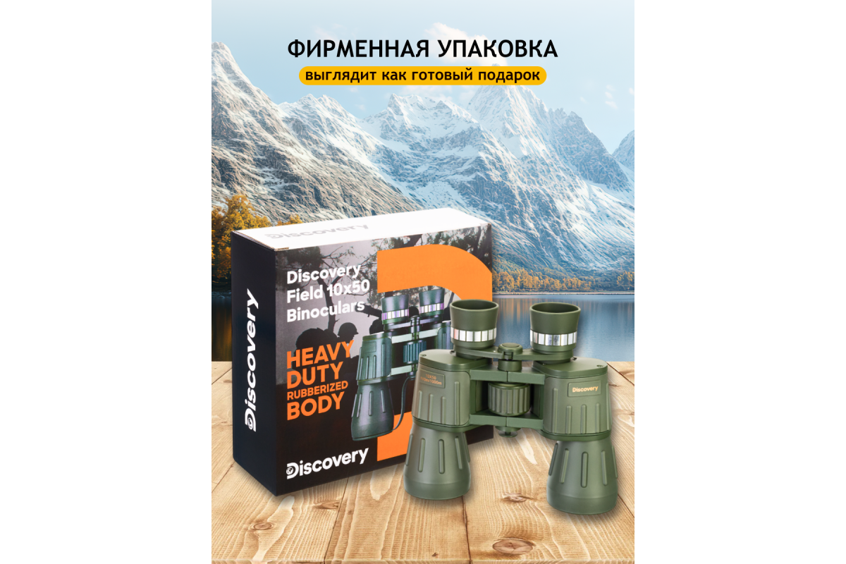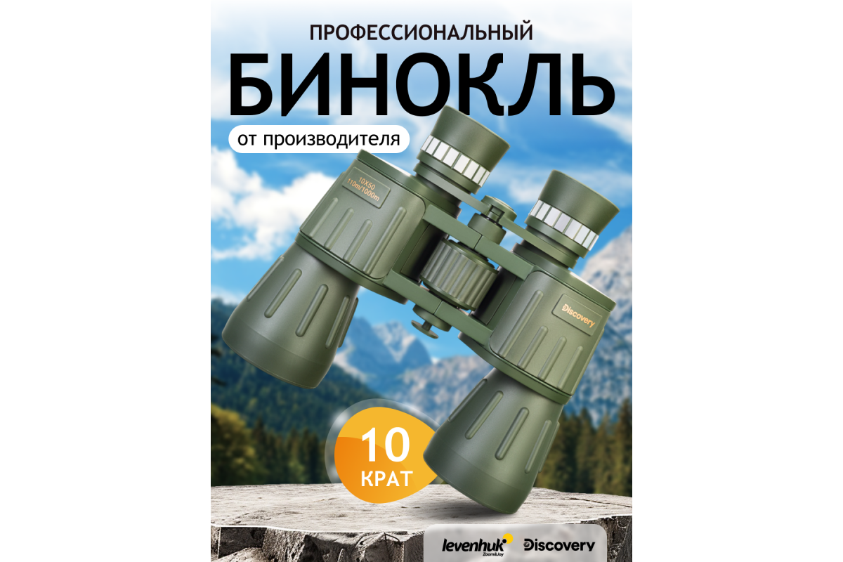 Levenhuk Discovery Field 10x50 – это бинокль с хорошей светосилой, предназначенный для наблюдений на местности. Он послужит отличным оптическим инструментом при охранных наблюдениях, на охоте и рыбалке, в походе и экспедиции. Оптика бинокля построена по классической Porro-схеме и формирует изображение с увеличением 10 крат. 50-миллиметровые объективы собирают много света, что в сочетании с многослойным просветлением стекол дает яркое высококонтрастное изображение. Бинокль не подведет как днем, так и в сумерках.