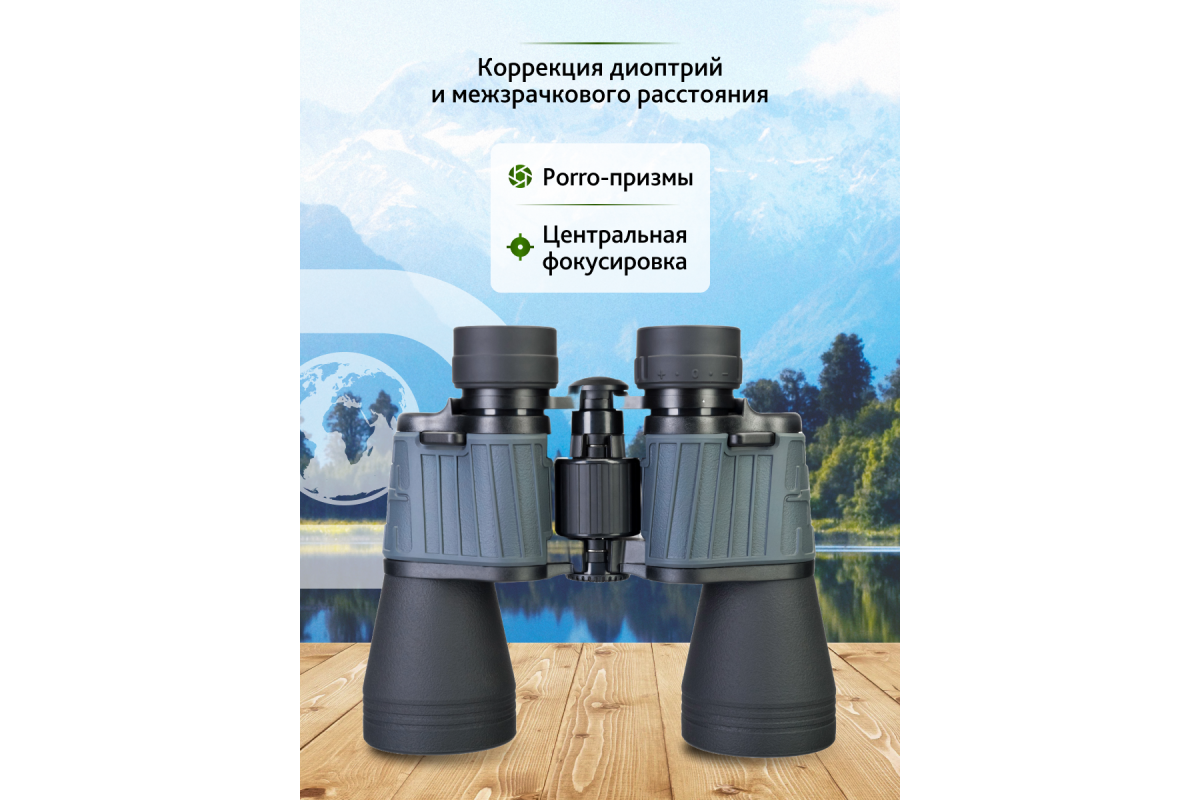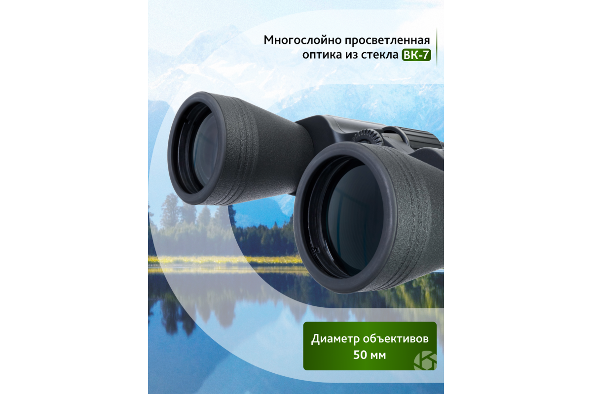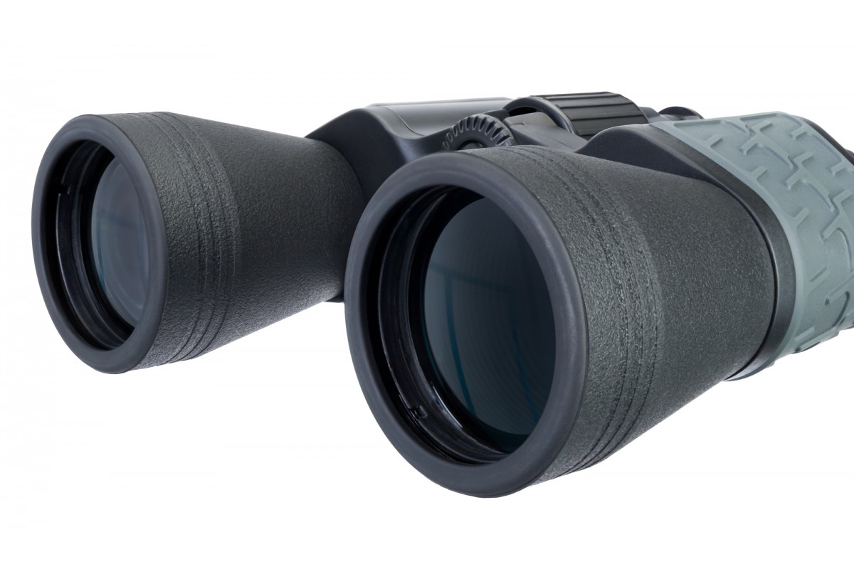 Porro-призмы и линзы сделаны из оптического стекла BK-7. Также они дополнены несколькими слоями просветляющего покрытия, которое повышает контраст изображения и позволяет лучше различать мелкие детали объектов при наблюдениях в сумерках. Центральный барабан фокусировки удобно ложится под пальцы, что позволяет без труда настраивать резкость одной рукой. Для более точной настройки оптики можно использовать кольцо на правом окуляре, которое отвечает за регулировку диоптрий. Также можно выставить удобное расстояние между зрачками. Наглазники окуляров можно складывать и раскладывать.