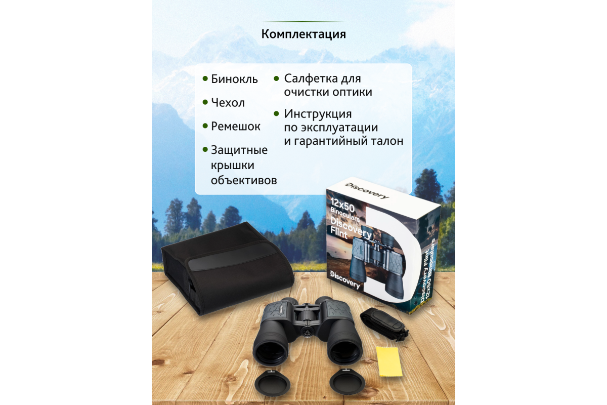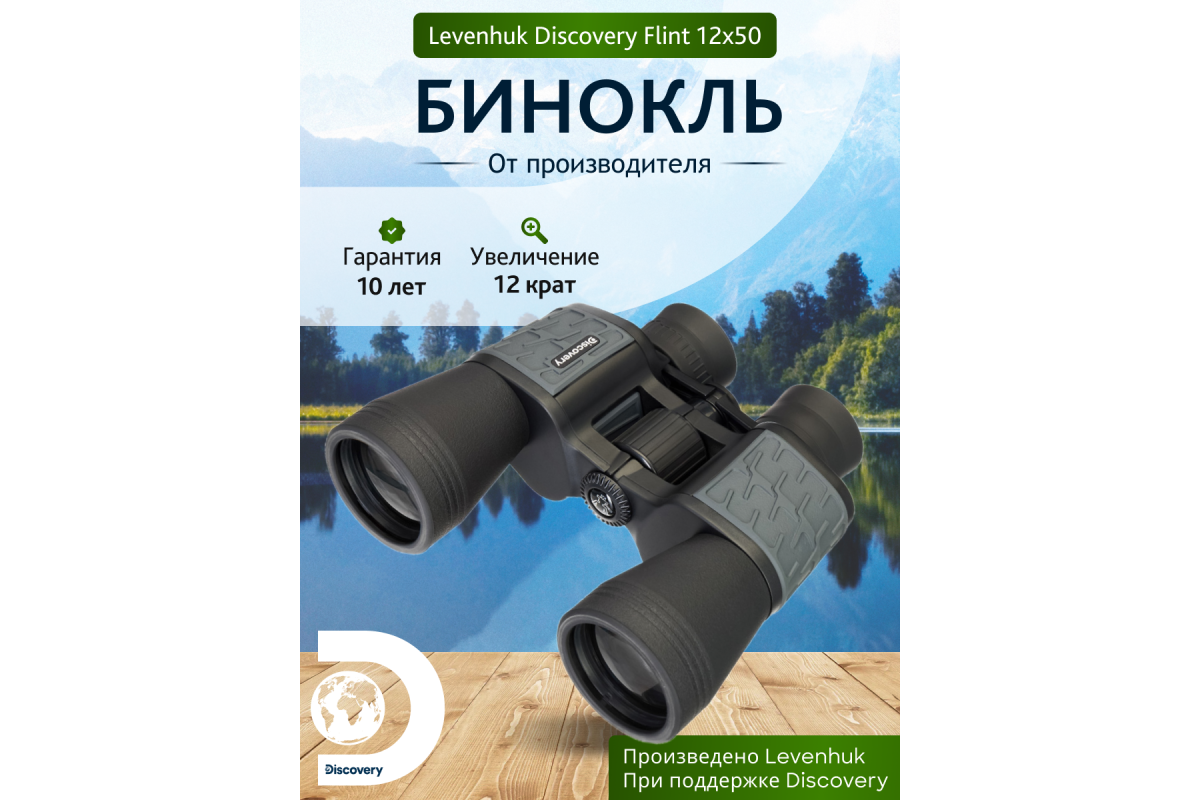 Levenhuk Discovery Flint 12x50 – универсальный бинокль с 12-кратным увеличением. Благодаря высокой кратности он идеально подходит для подробного изучения отдельных объектов, удаленных на значительное расстояние. Этот оптический прибор станет прекрасным выбором для охоты, похода или рыбалки. Он надежен, удобен в использовании и передает ясную и четкую картинку по всему полю зрения.