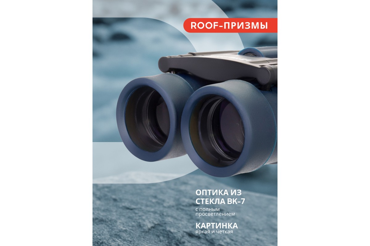 Roof-призмы и линзы из оптического стекла BK-7 с полным просветлением позволяют наблюдать окружающий мир контрастным и ярким. Мелкие детали просматриваются хорошо и без искажений. Для настройки резкости в бинокле установлен классический механизм центральной фокусировки. Также можно корректировать диоптрии на правом окуляре, что будет удобным для пользователя с неидеальным зрением. Доступна и регулировка межзрачкового расстояния.