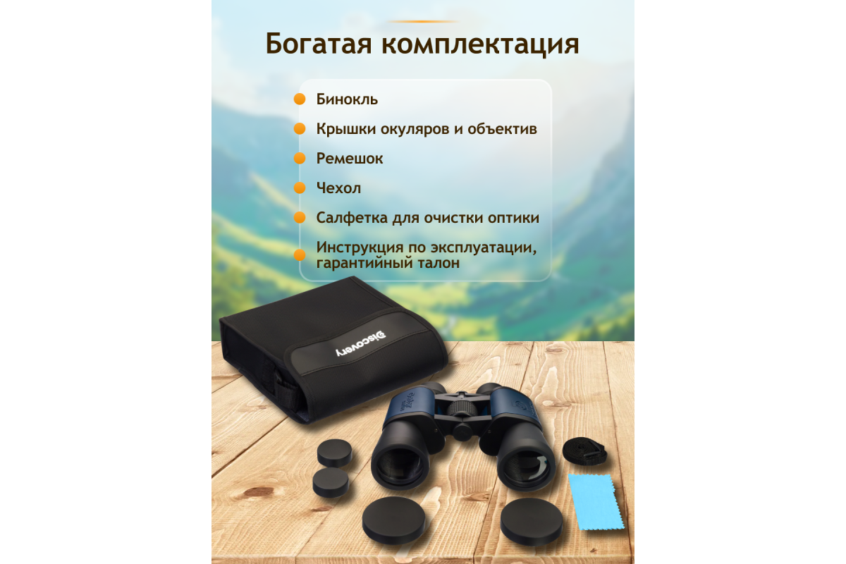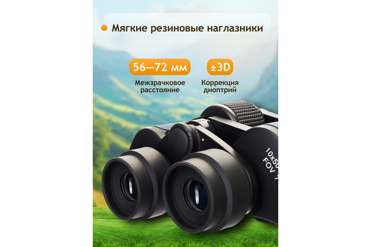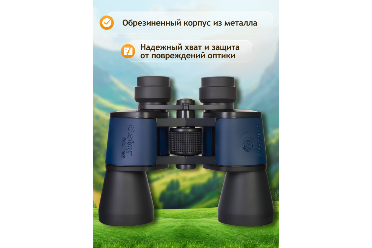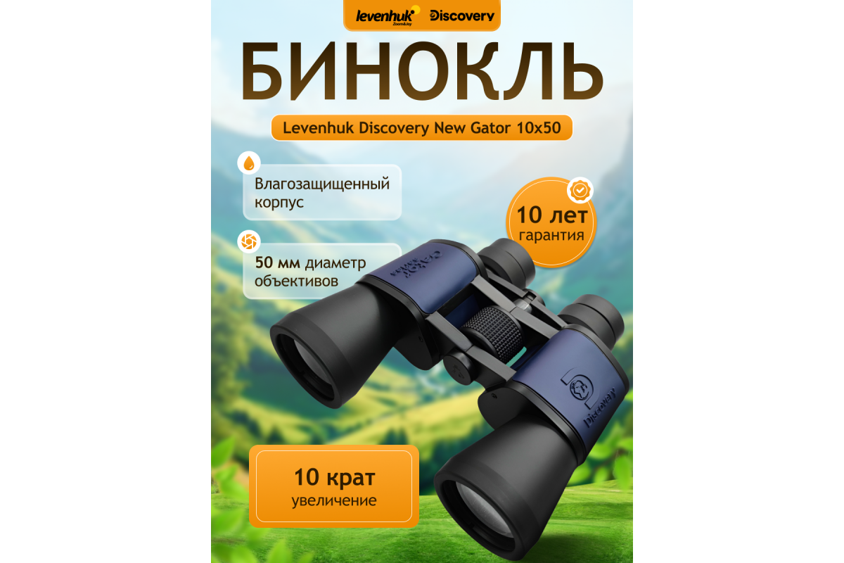 10-кратное увеличение при 50-миллиметровых объективах – это классика для полевых биноклей. Такое сочетание обеспечивает достаточное приближение для наблюдения удаленных объектов, хорошую светопропускную способность для получения яркой картинки при любой освещенности, широкий обзор для отслеживания движущихся целей. Бинокль Levenhuk Discovery New Gator 10x50 хорошо проявляет себя на охоте, в походах, в поисково-спасательных операциях. Это отличный выбор для любых полевых наблюдений.