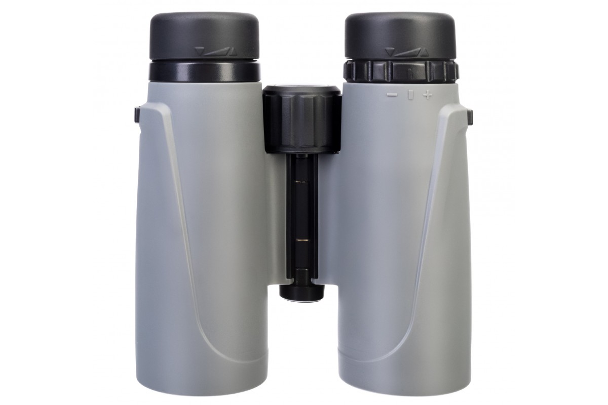 В оптической схеме используются roof-призмы. Окуляры состоят из трех оптических элементов в трех группах. На линзы нанесено многослойное просветляющее покрытие, поэтому картинка получается яркой, резкой и контрастной. Для наведения на объект используется барабан центральной фокусировки. На правом окуляре расположено кольцо диоптрийной корректировки. Для максимально комфортного использования бинокль снабжен поворотно-выдвижными наглазниками.