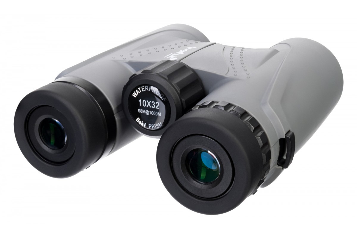 Азотное наполнение корпуса предотвращает появление конденсата на линзах. Бинокль полностью водонепроницаем, поэтому его можно использовать при любой погоде. На корпусе имеется гнездо для установки на штатив.