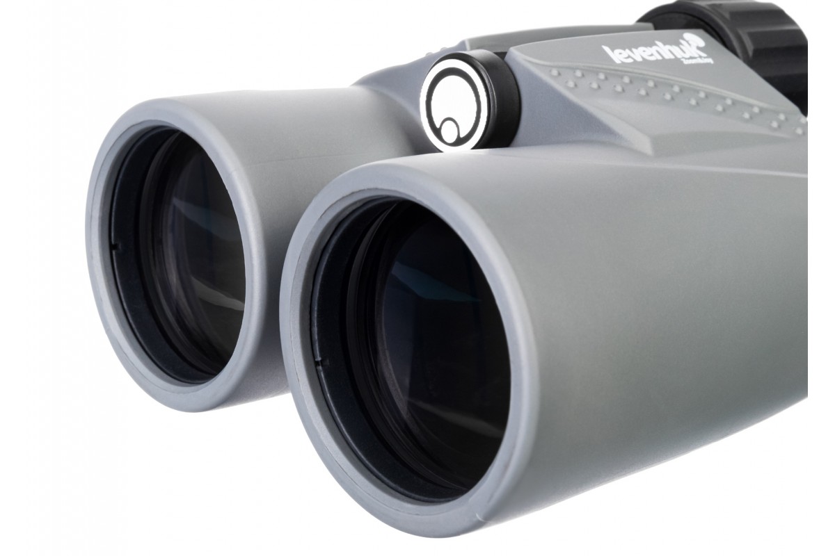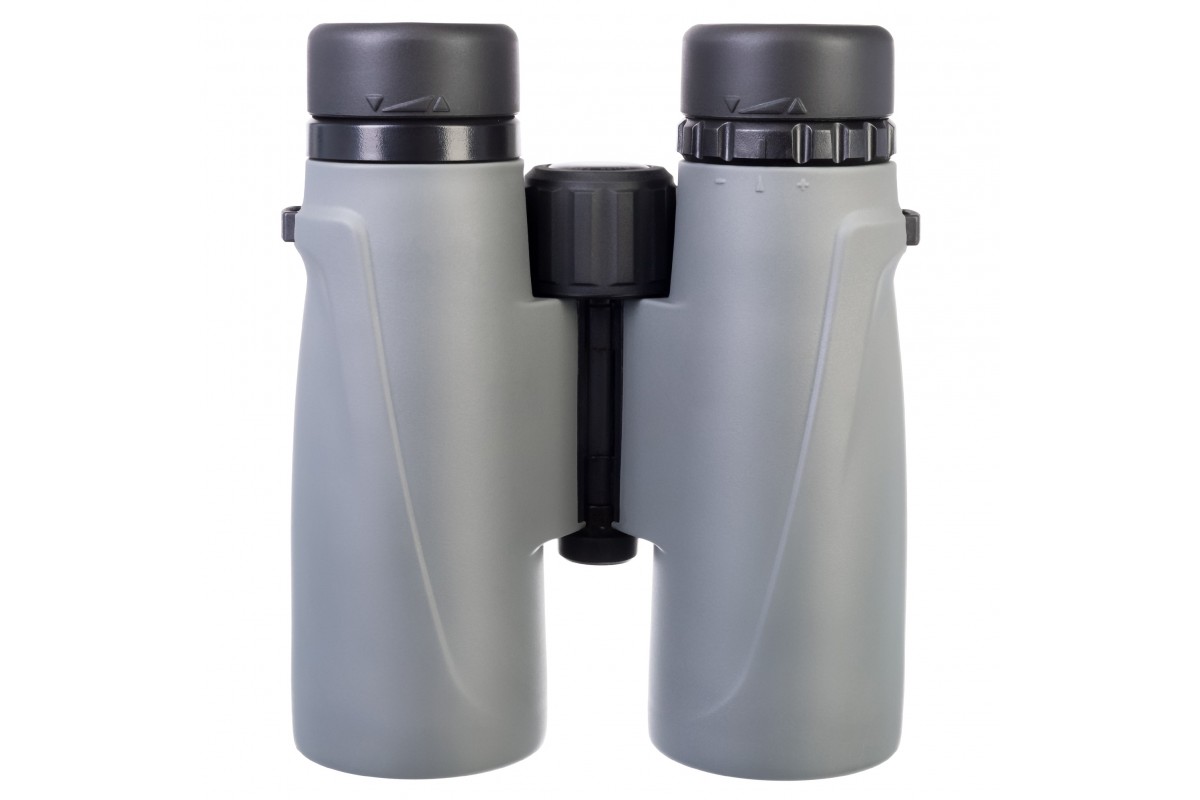 В конструкции бинокля предусмотрено все для удобства пользователя: межзрачковое расстояние легко регулируется, поворотно-выдвижные наглазники позволяют менять положение бинокля относительно глаз, есть возможность настройки диоптрий. Корпус покрыт рельефной светло-серой резиновой оболочкой – она обеспечивает надежный захват, смягчает удары и защищает бинокль от повреждений.