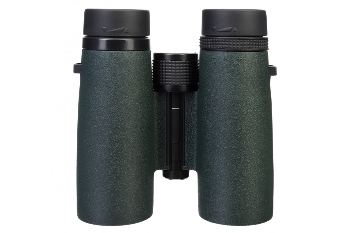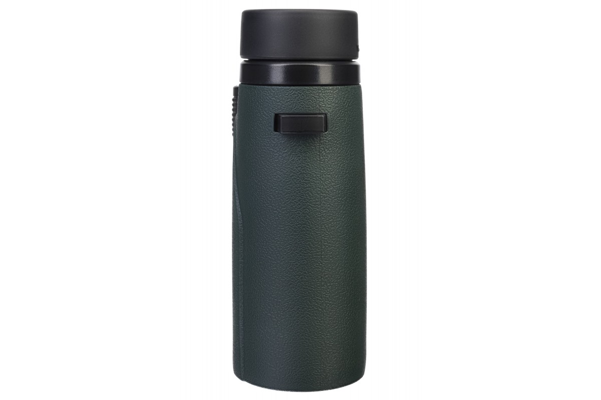 Удобство использования – еще один плюс этой модели. Вы можете легко менять межзрачковое расстояние, настраивать диоптрии и регулировать положение прибора относительно глаз. Поворотно-выдвижные наглазники имеют плавный ход и четко фиксируются в выбранном положении. Корпус не скользит даже в мокрых руках – рельефная темно-зеленая резиновая оболочка обеспечивает надежный захват прибора.