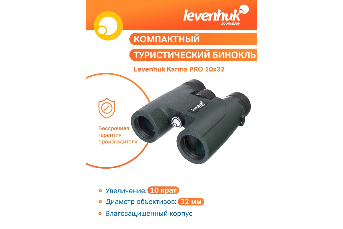 Легкий, удобный и надежный – бинокль Levenhuk Karma PRO 10x32 просто создан для путешествий и новых открытий! Высококлассная оптика с полным многослойным просветлением формирует чистое и четкое изображение. Благодаря десятикратному увеличению вы сможете хорошо рассмотреть даже сильно удаленные объекты, а широкое поле зрения позволяет с комфортом следить за движущимися целями. Бинокль выпускается в прочном водонепроницаемом корпусе – ему не страшна непогода!