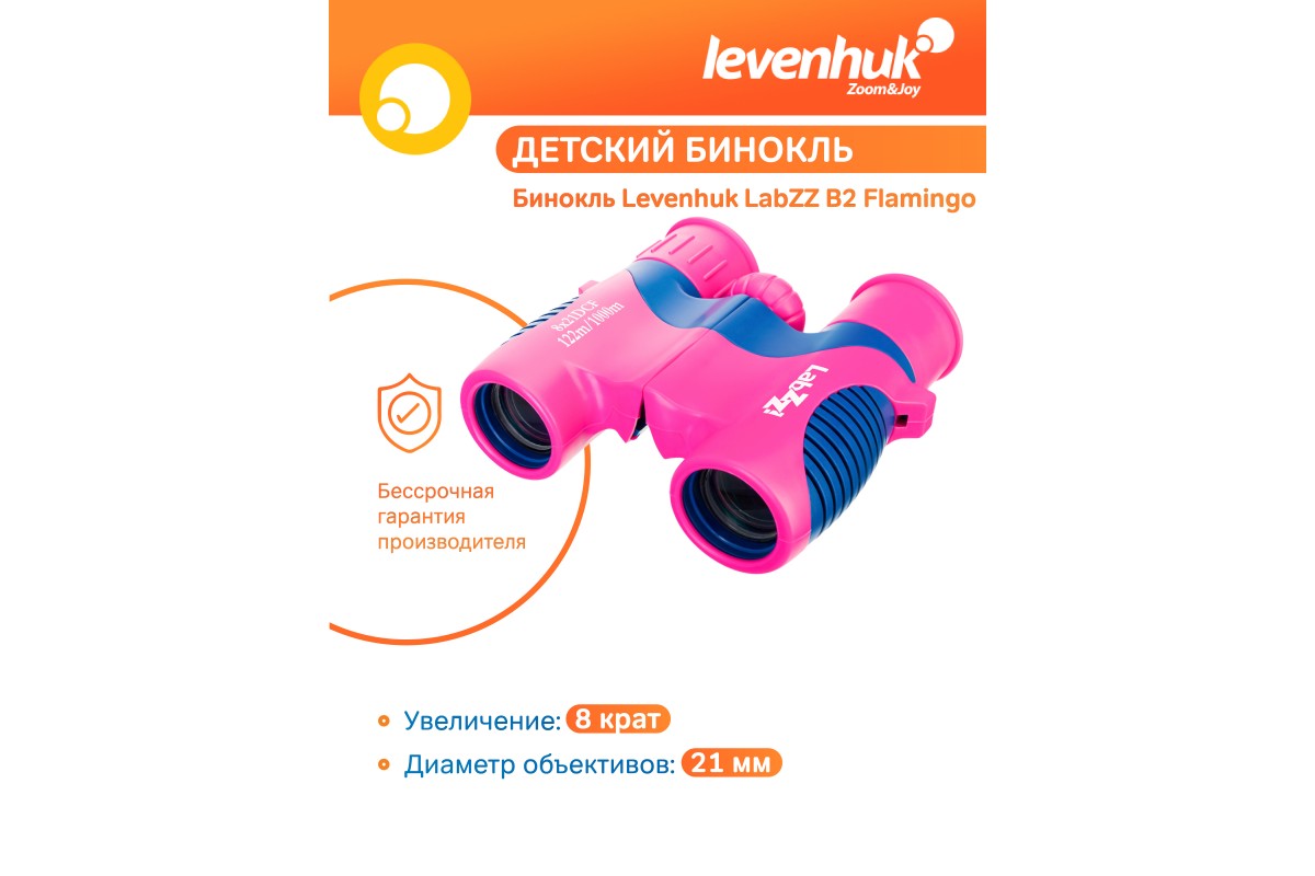 Бинокль Levenhuk LabZZ B2 Flamingo создан специально для маленьких исследователей и исследовательниц окружающего мира. Он привлечет внимание ребенка своим ярким внешним видом и порадует возможностью поближе рассмотреть далекие предметы. Легкий и компактный бинокль отлично подходит для того, чтобы стать постоянным спутником на семейных загородных прогулках. Пригодится он и на праздничных мероприятиях, и на экскурсии, и в зоопарке. Все, что заинтересует малыша, можно будет изучить на 8-кратном увеличении.